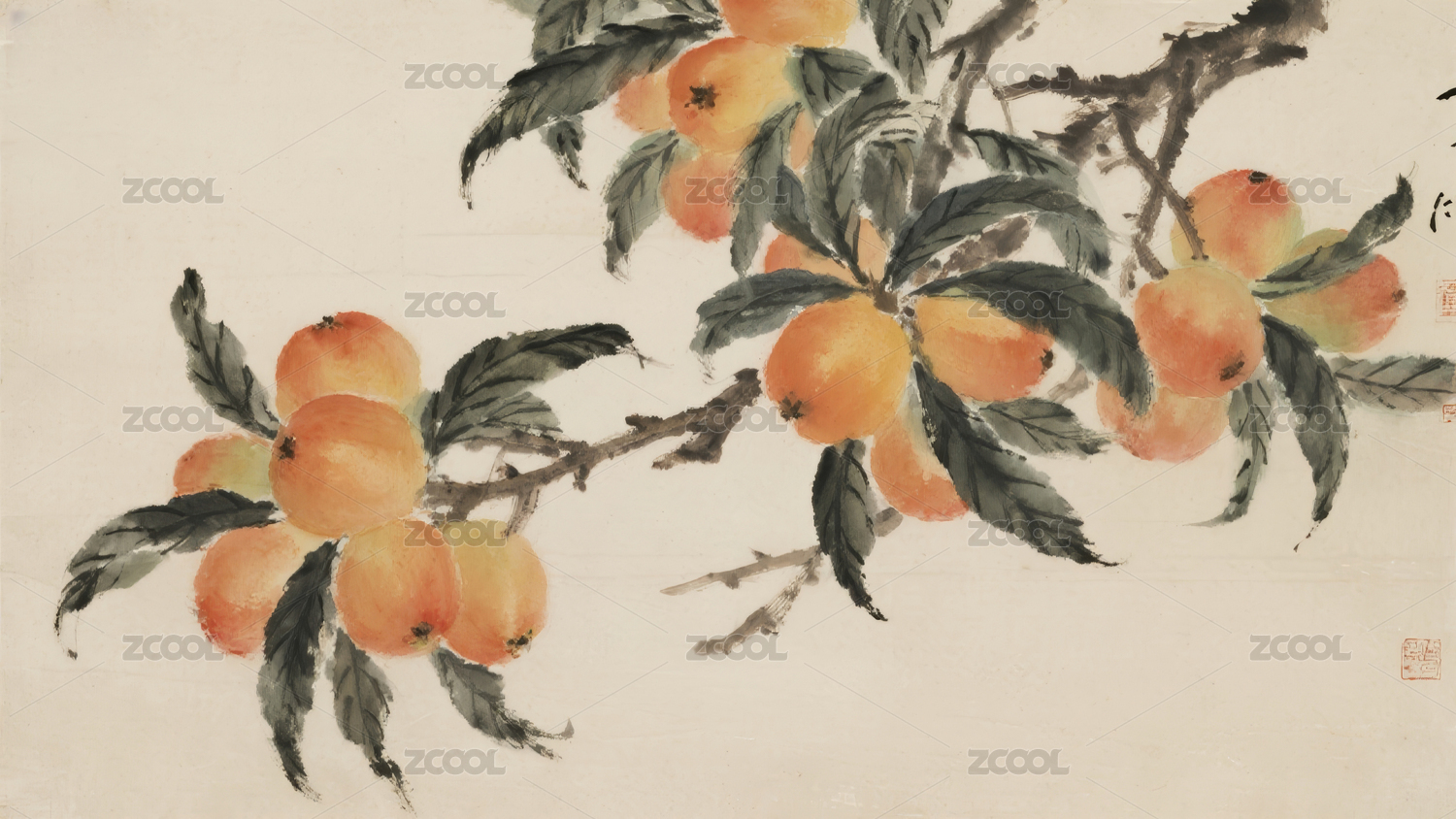 柿子,国画,枝头,水墨画,事事如意,果实,传统,绘画,吉祥,工笔画