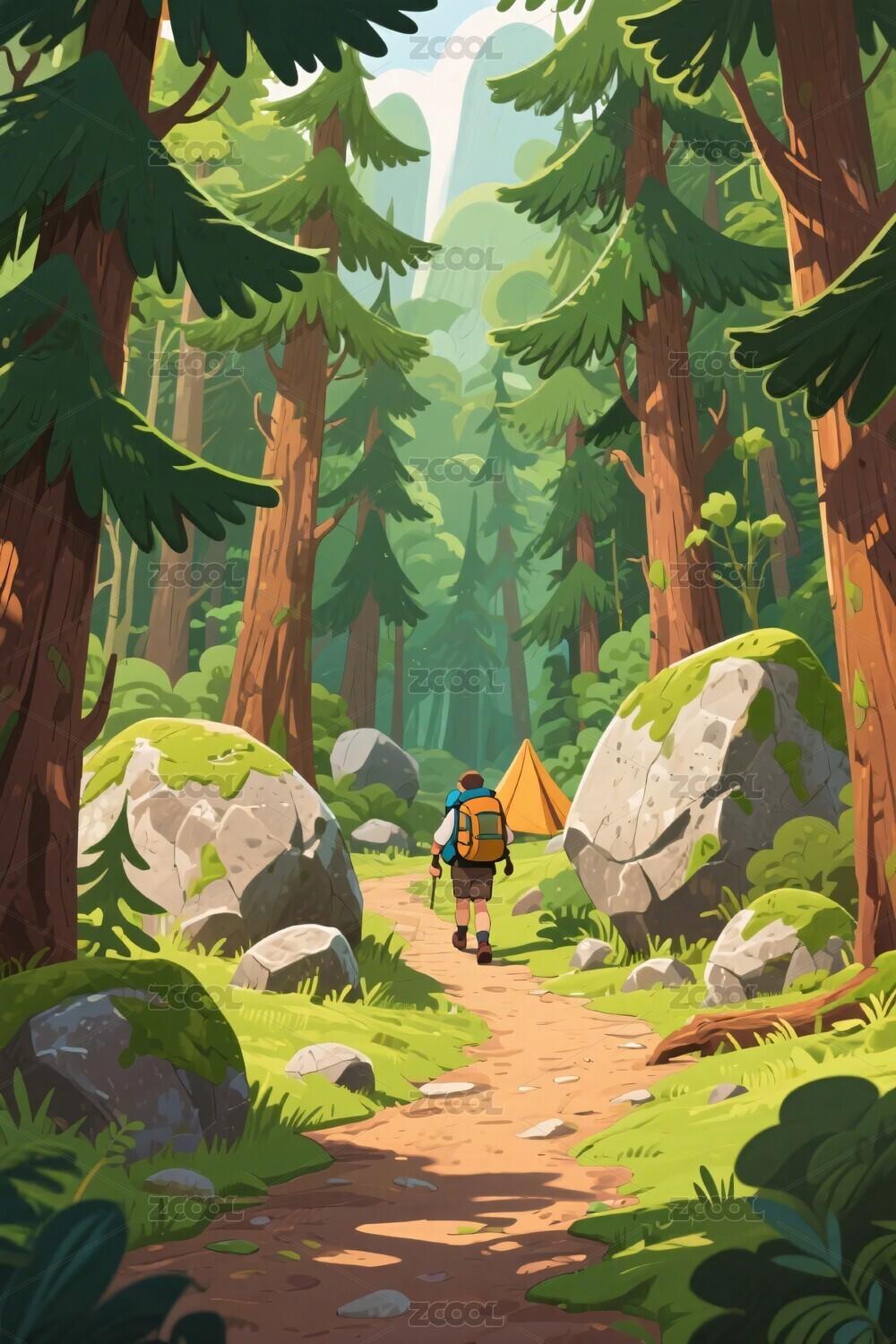森林小径卡通插画