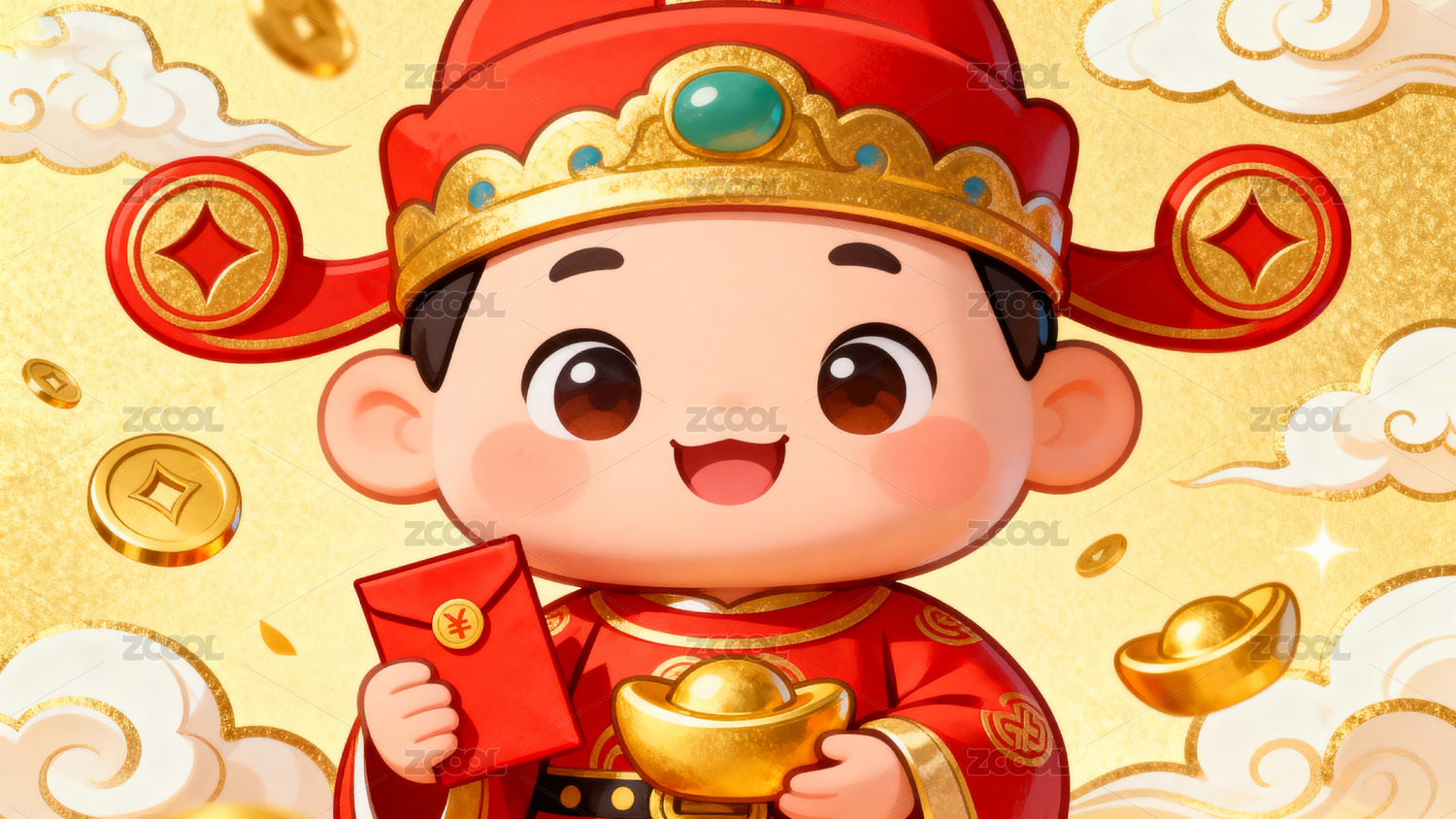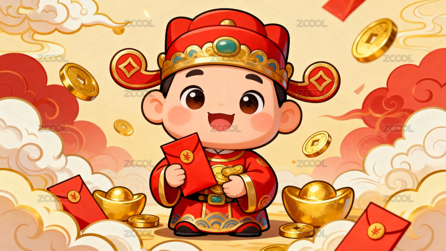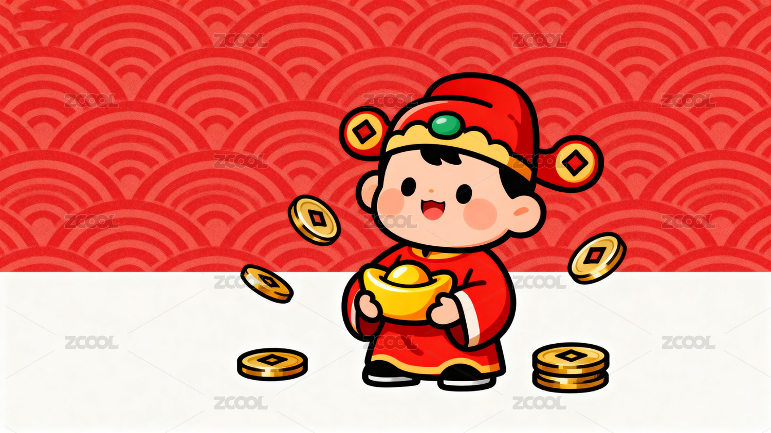 财神,笑容,背景,可爱,卡通,红色,祝福,喜庆,装饰,绿色