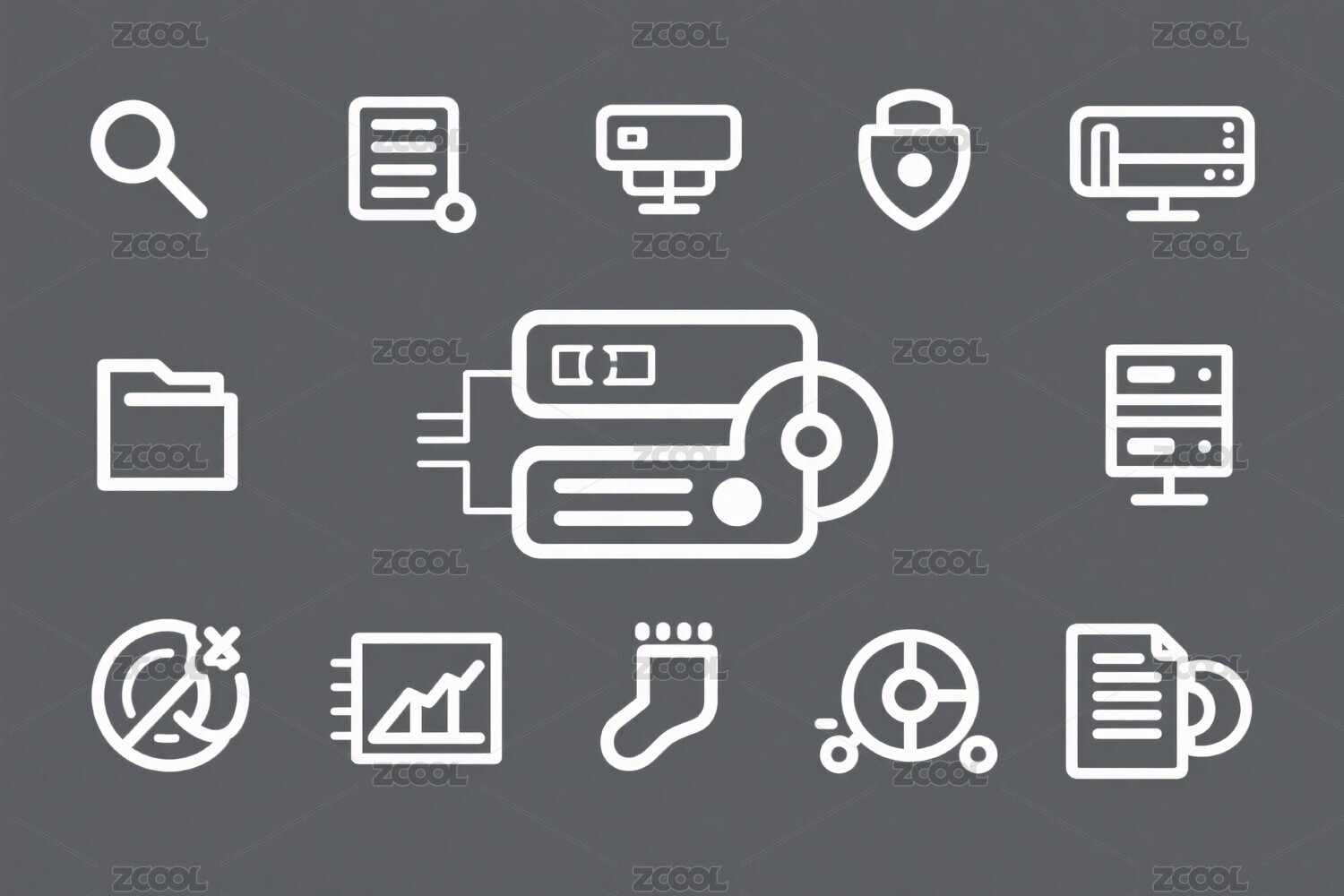 图标,矢量,插画,集合,文件夹,服务器,图表,滴管,饼图,网络