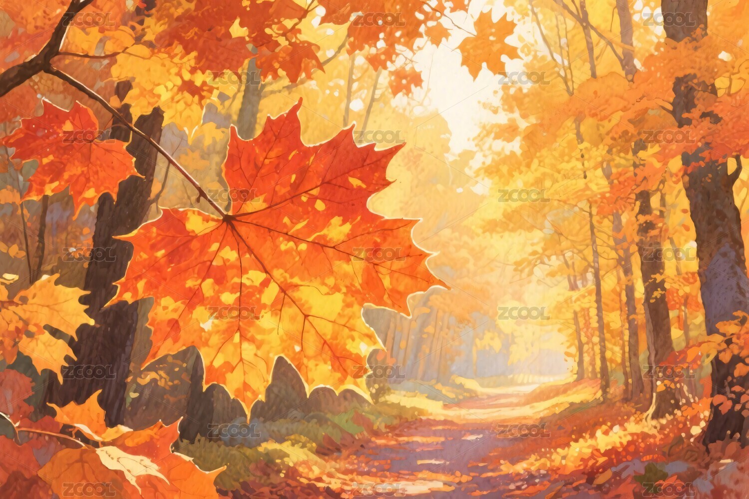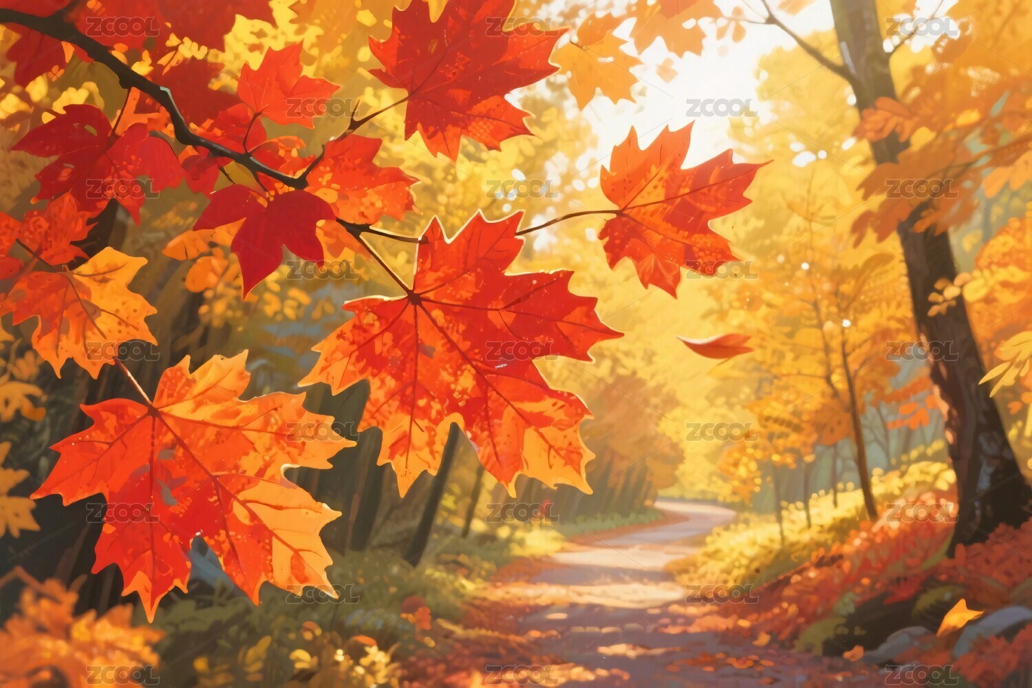 枫叶,秋天,森林,小径,树木,阳光,落叶,林间,风景,自然
