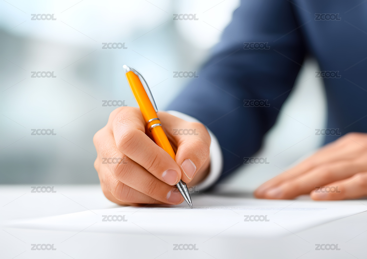 商人在文书上签字手部特写