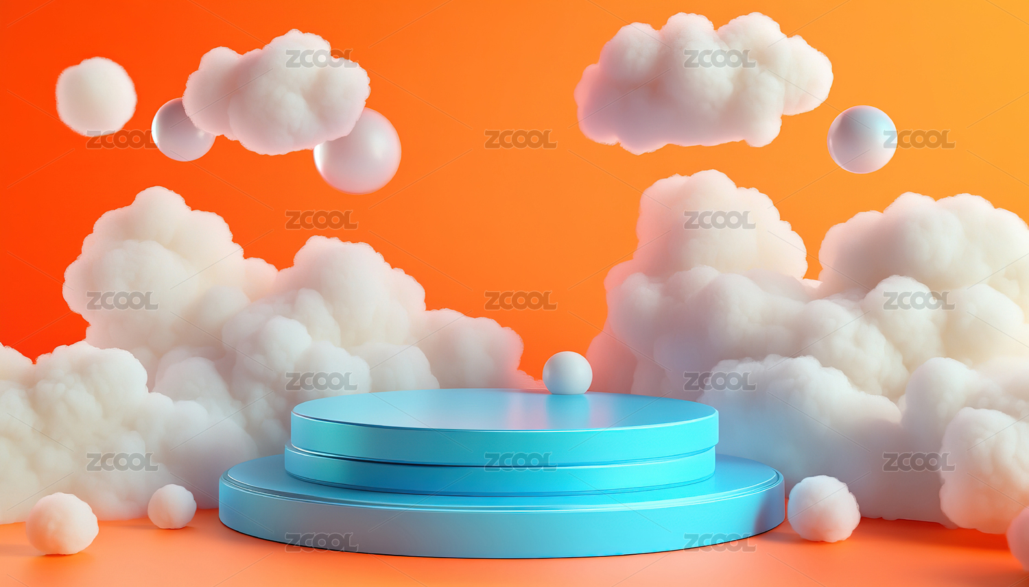3D抽象云朵电商展示台