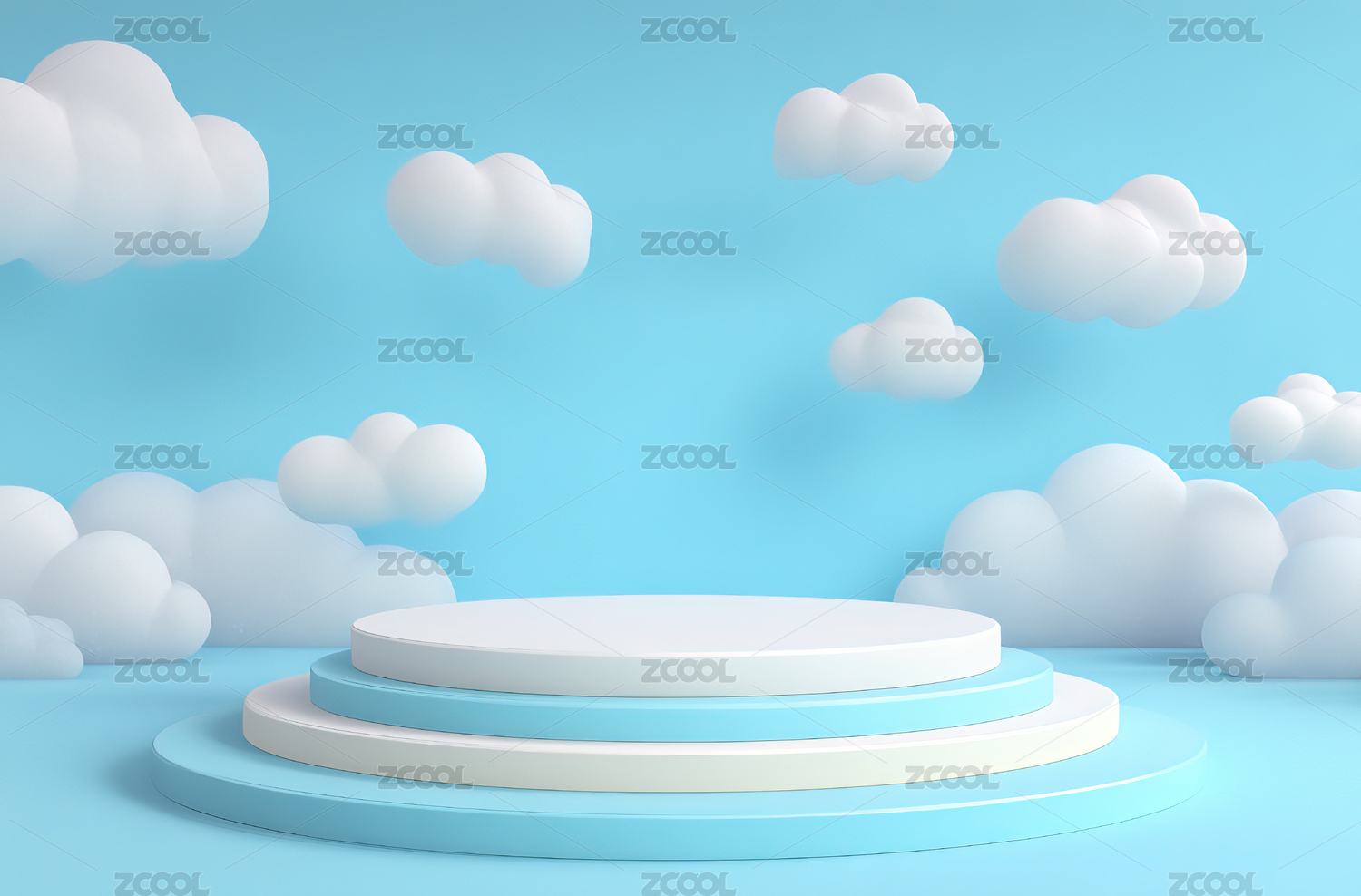 蓝色圆形舞台与白云装饰的梦幻场景