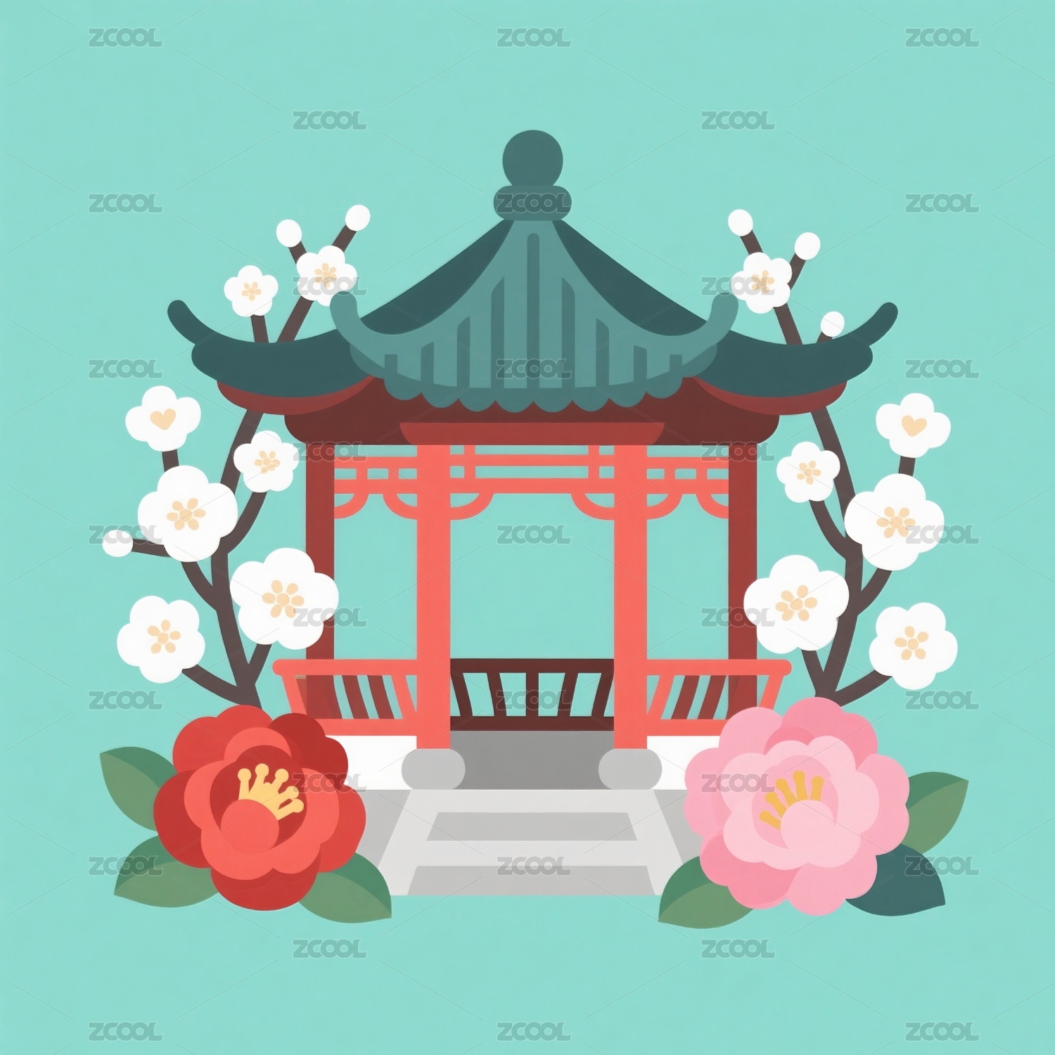 亭台楼阁梅花盛开景象