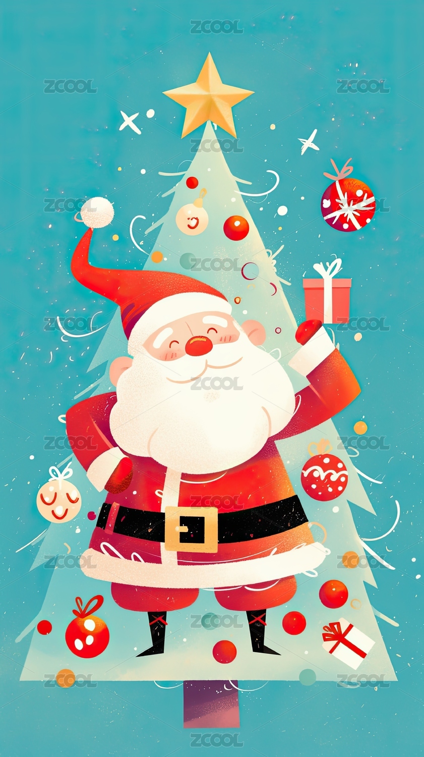 圣诞老人,礼物,雪花,圣诞装饰,插画,矢量,模板,节日,欢乐,红色