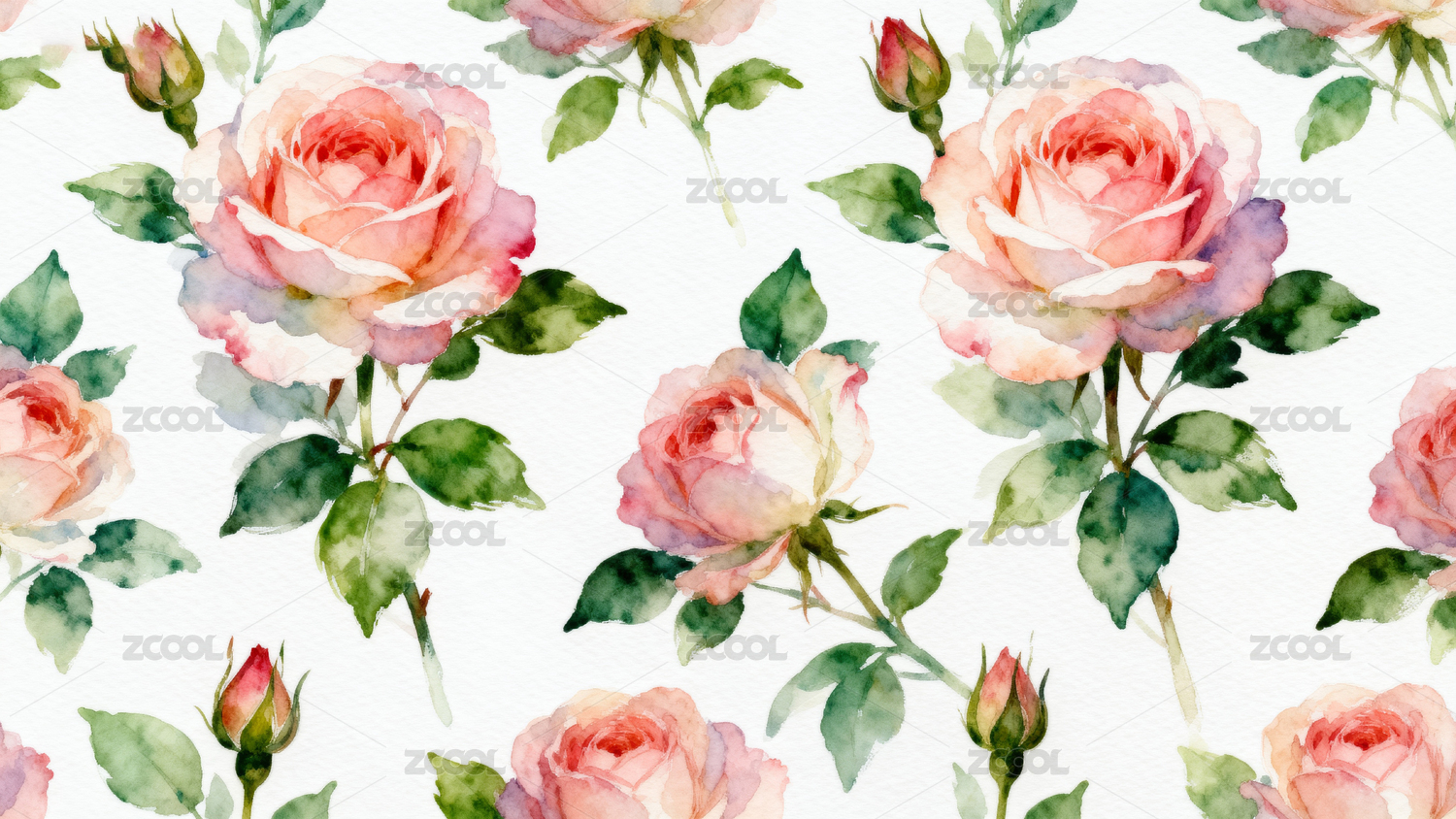 水彩玫瑰花卉图案