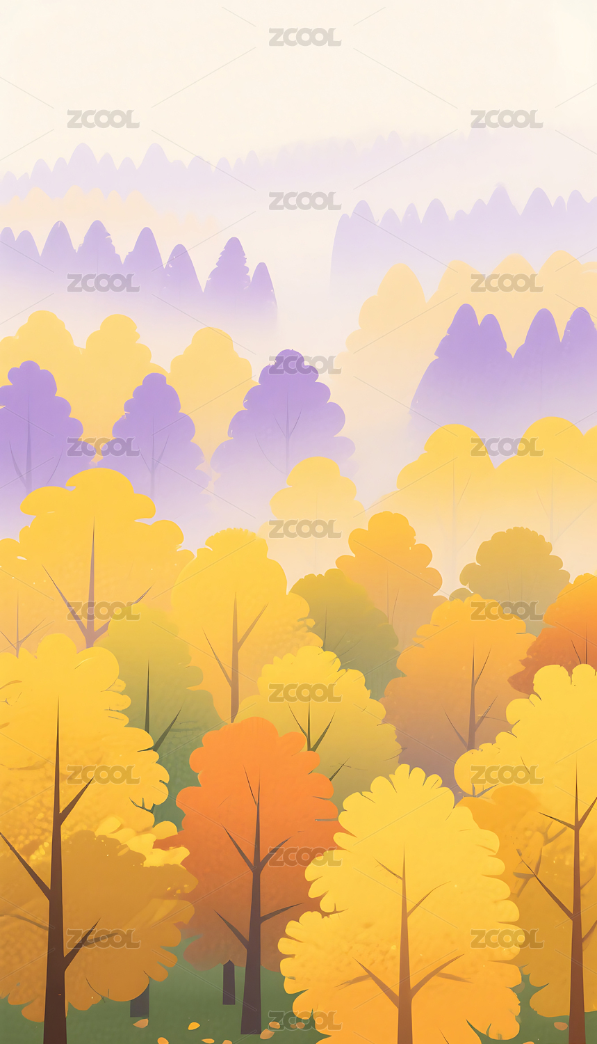 秋季森林里的树叶变成金黄色卡通插画
