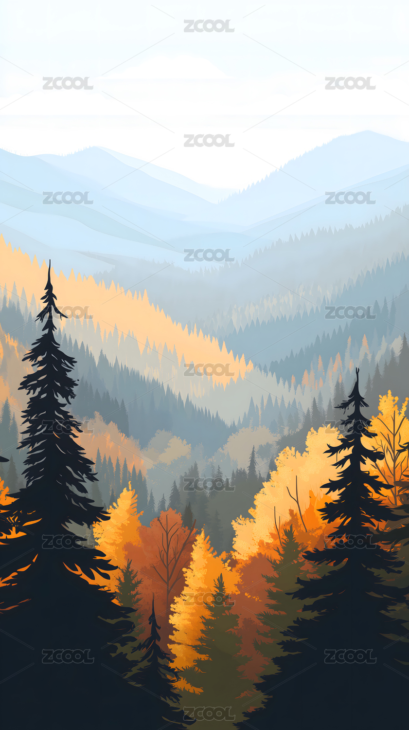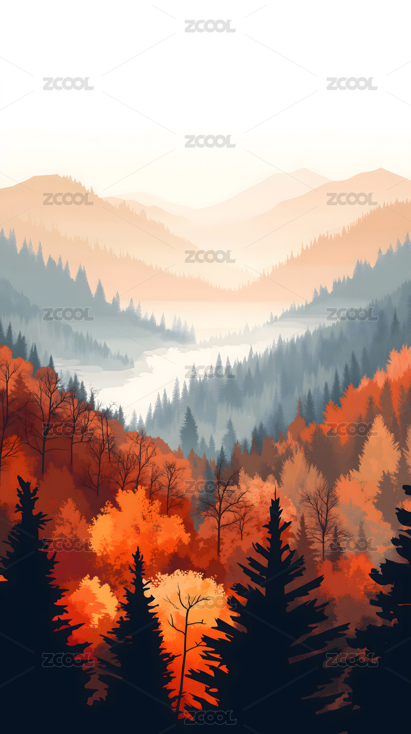 秋日迷雾森林层叠景致