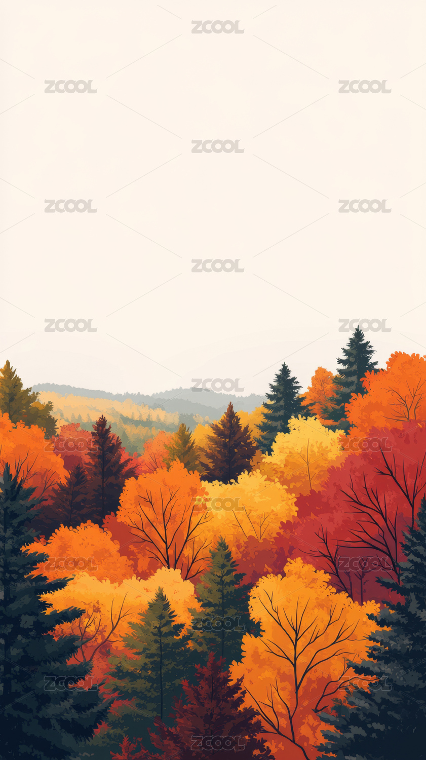 秋天树林树叶扁平风格插画