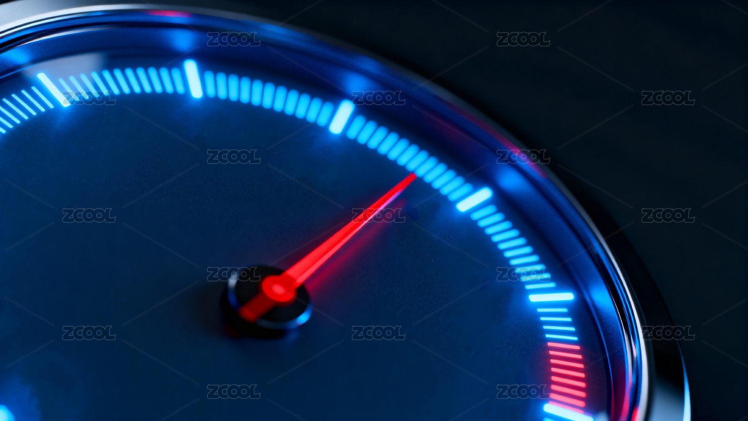 蓝色速度表盘指针指示