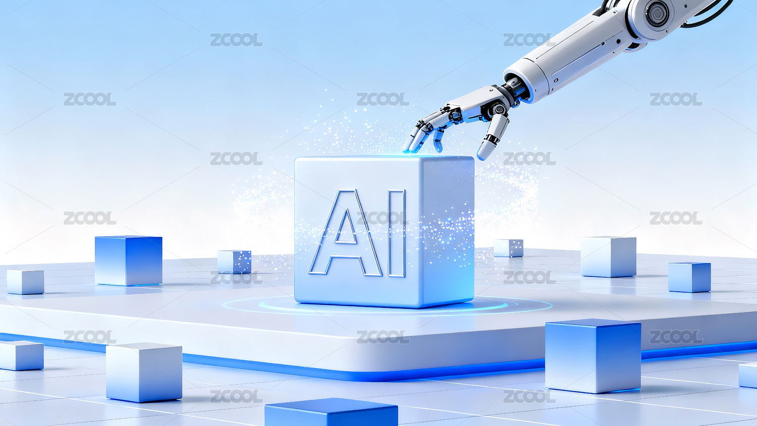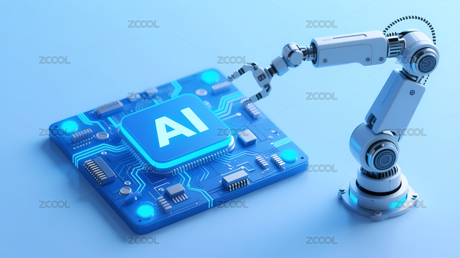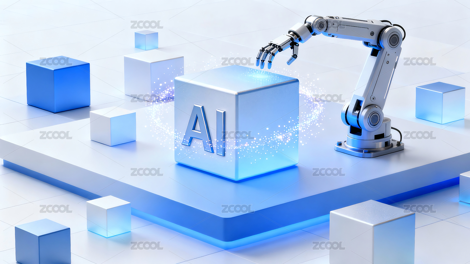 AI芯片,等距,大数据,模型,背景,立方体,机器人,人工智能,蓝色,机械臂
