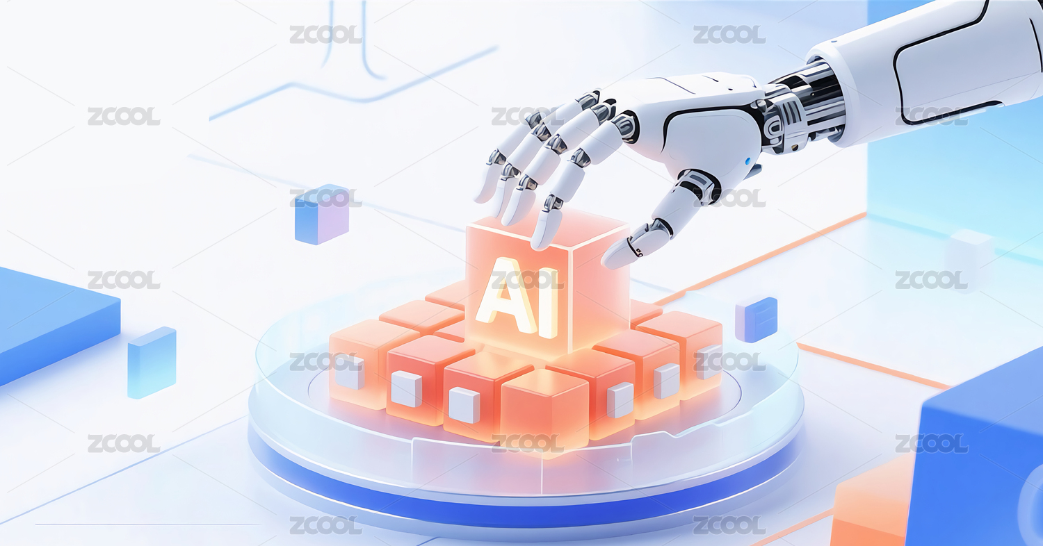 AI芯片,等距,大数据,模型,背景,立方体,机器人,人工智能,蓝色,机械臂