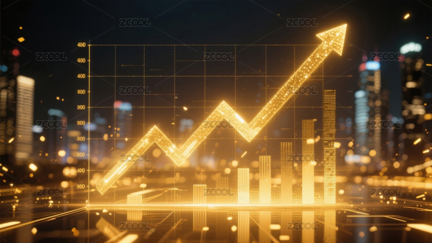 金融,黄金,城市,天际线,摩天大厦,柱状图,走势图,金色,光影,蓝色
