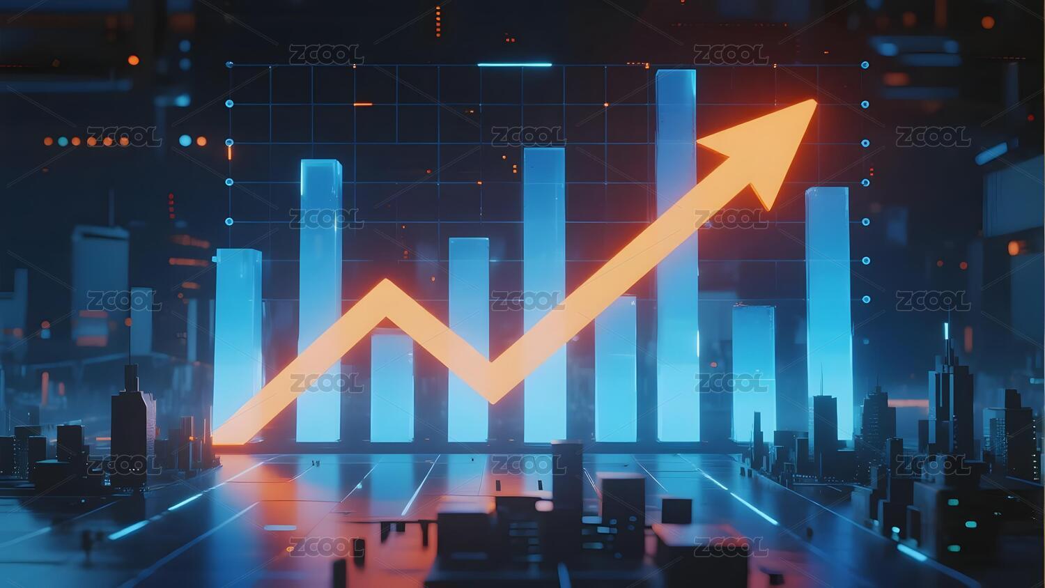 金融柱状图箭头增长背景