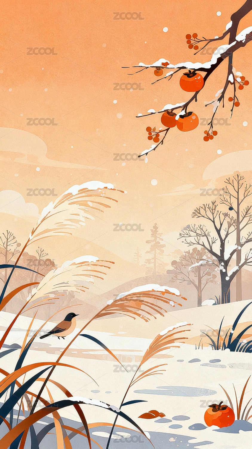 冬季主题雪景大雪冰天雪地节日氛围插画
