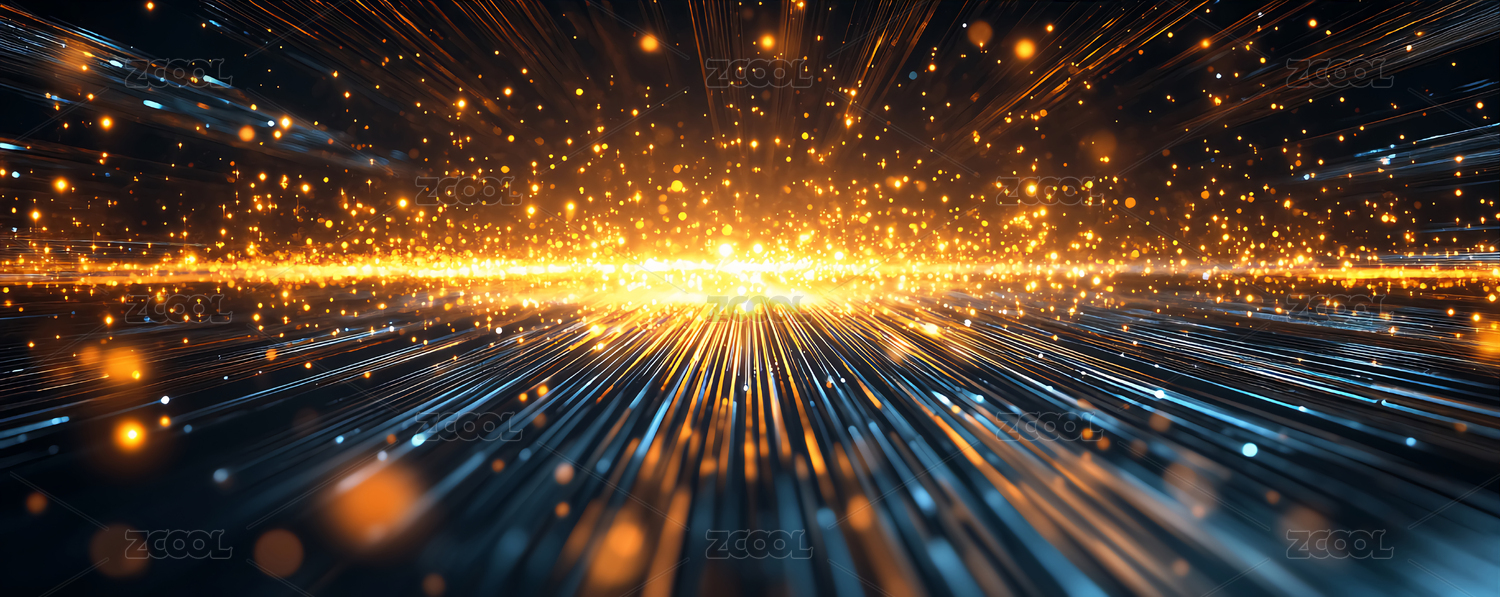 夜空穿梭的金色光束科技感背景