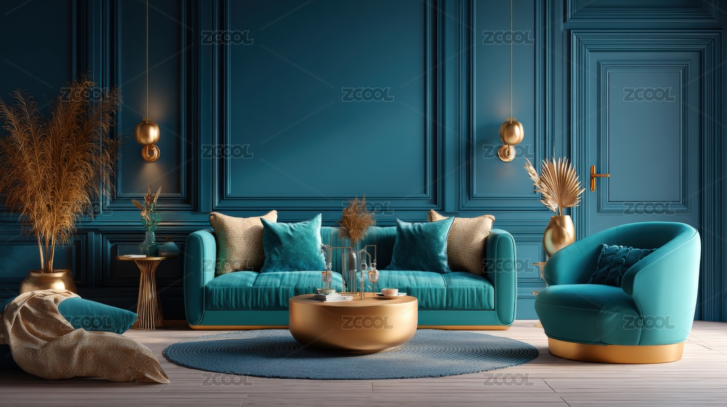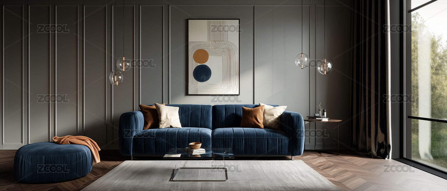 客厅,现代,沙发,海军,蓝色,丝绒,靠垫,装饰,米色,棕色