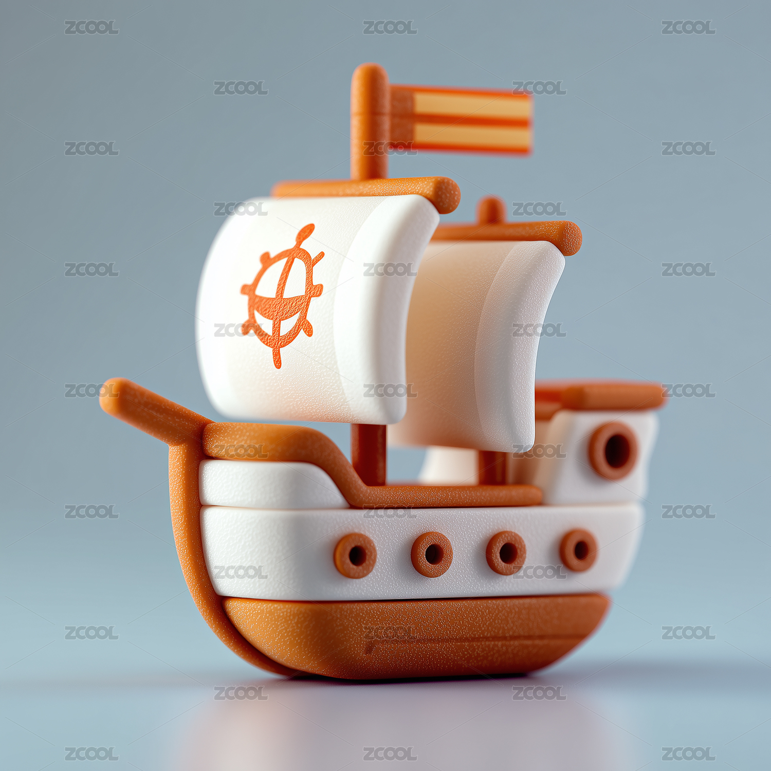 轮船,图标,粘土,白色,船身,橙色,细节,小旗,航行,海洋