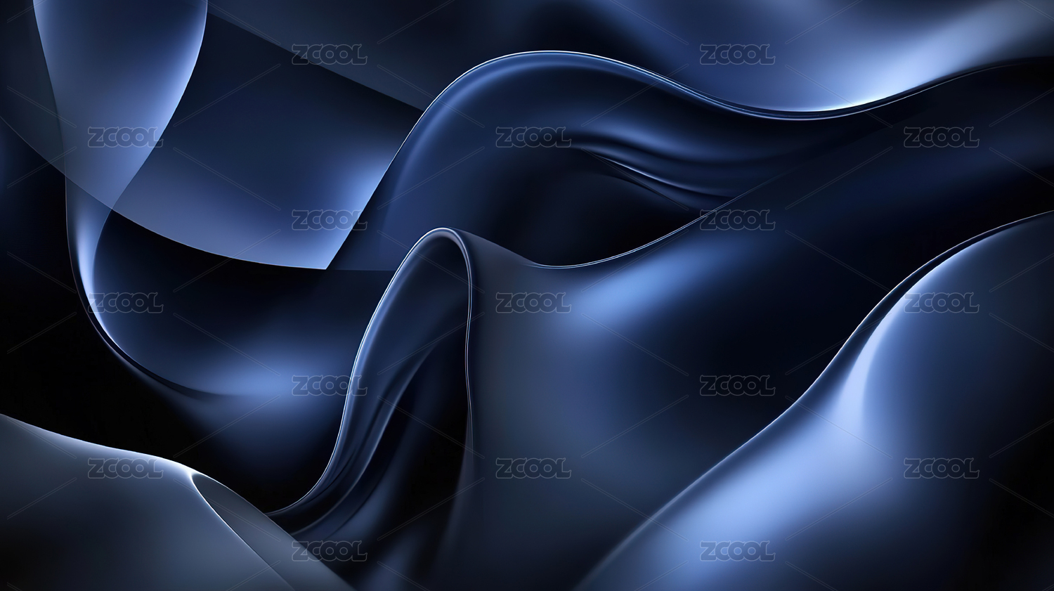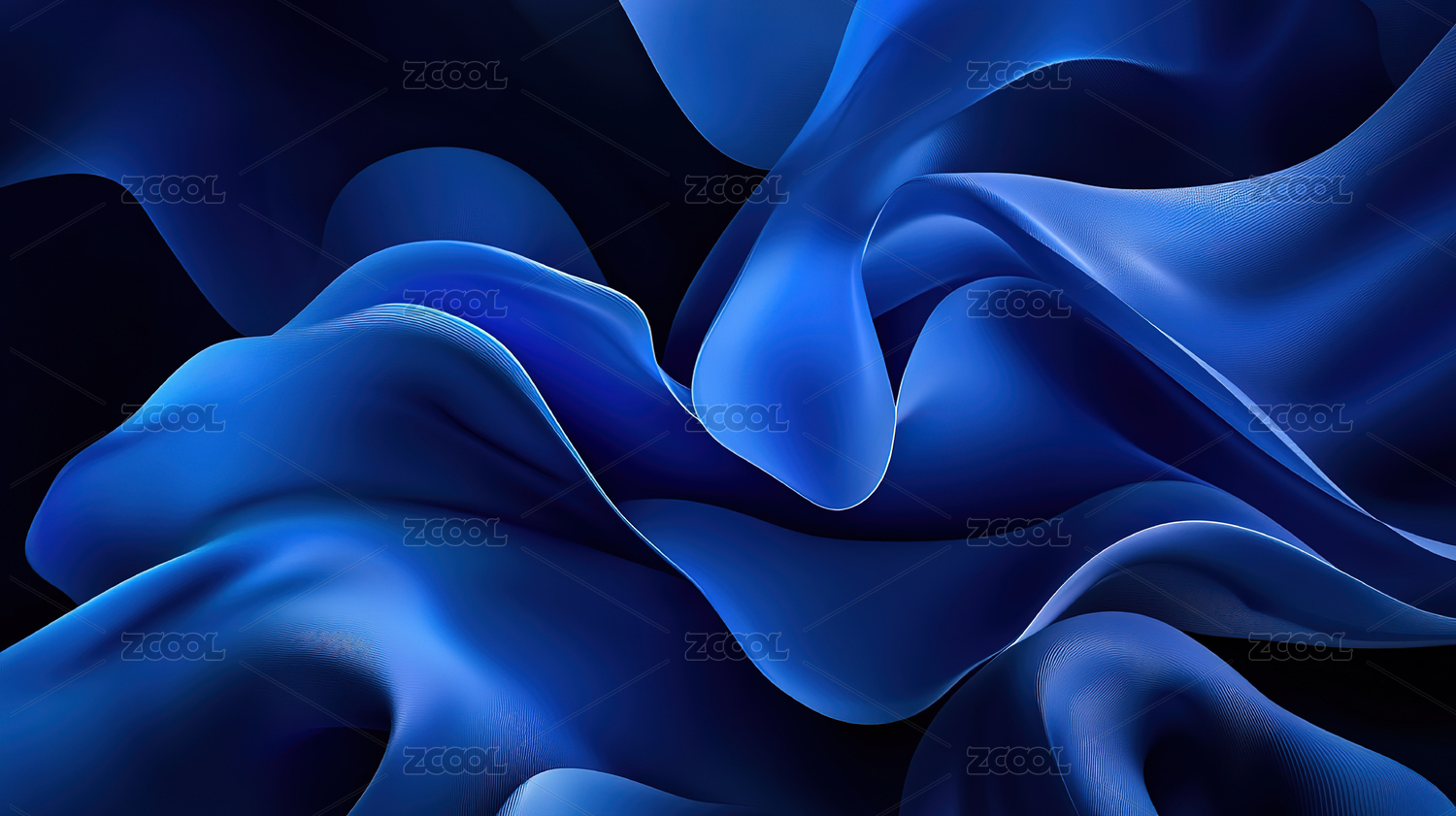 抽象流动蓝色丝绸质感画面
