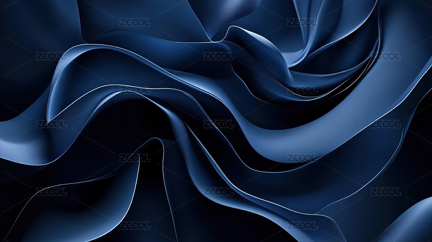深蓝色丝质布料的褶皱特写