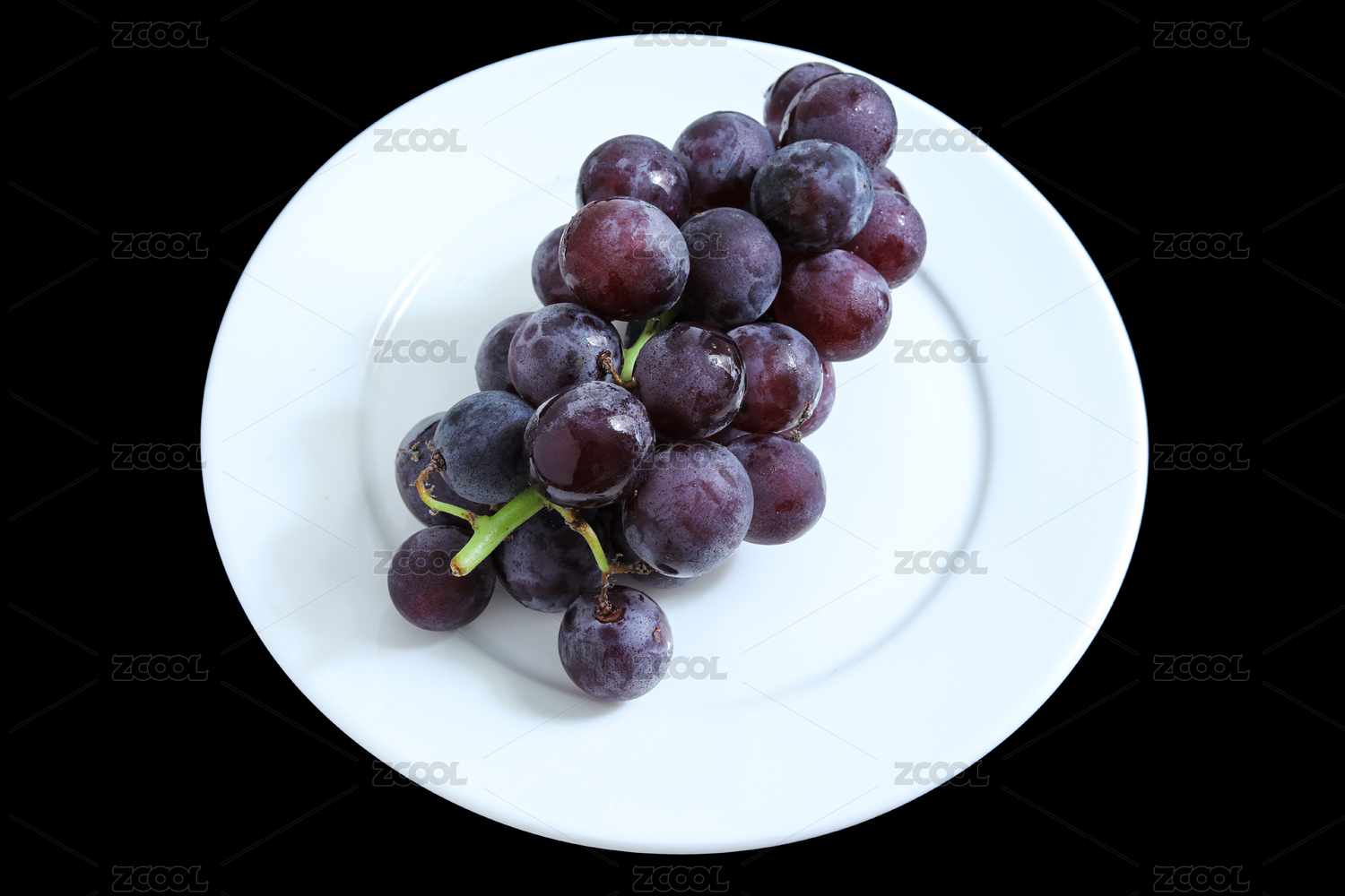 黑色背景上的一盘子下午茶新鲜水果葡萄