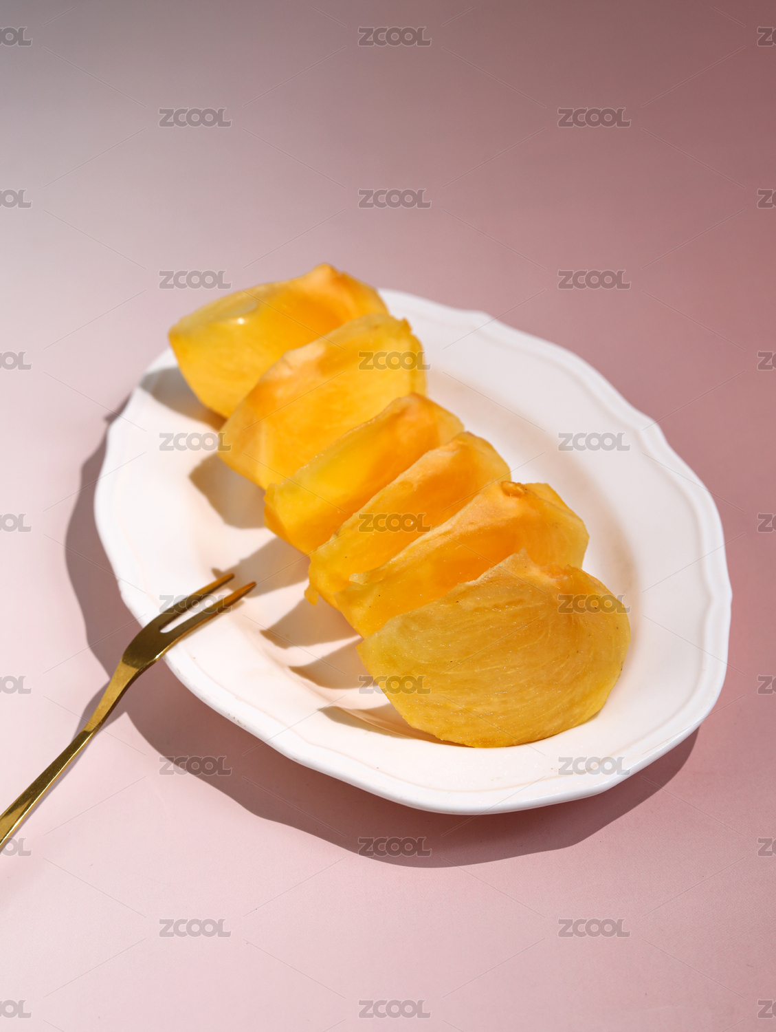 桌面盘子上切开的新鲜水果苹果果肉下午茶