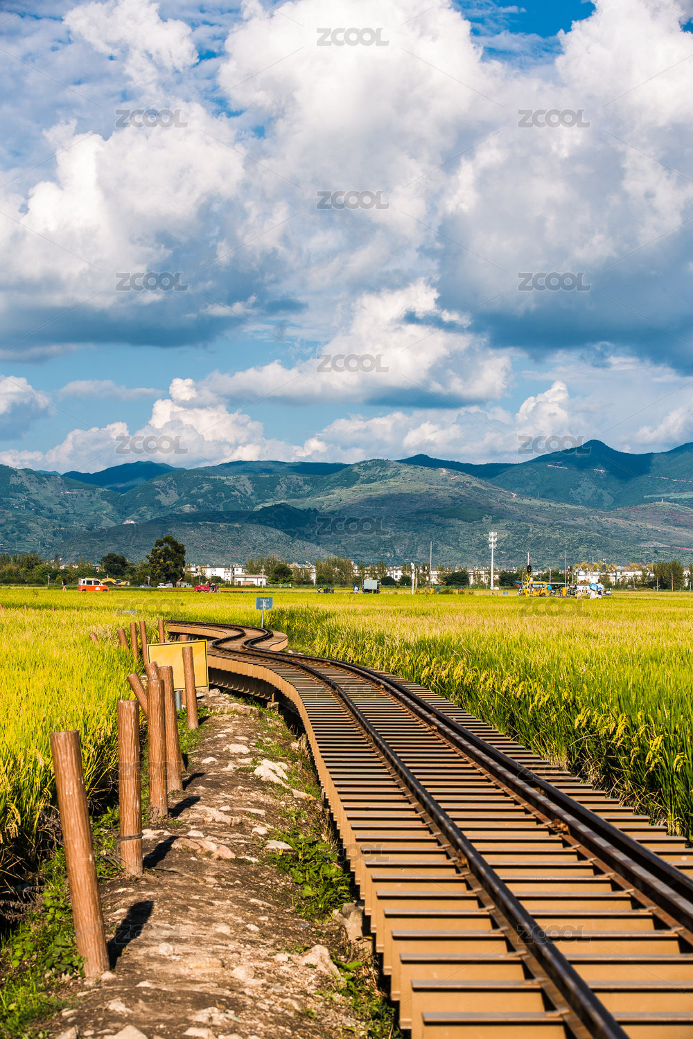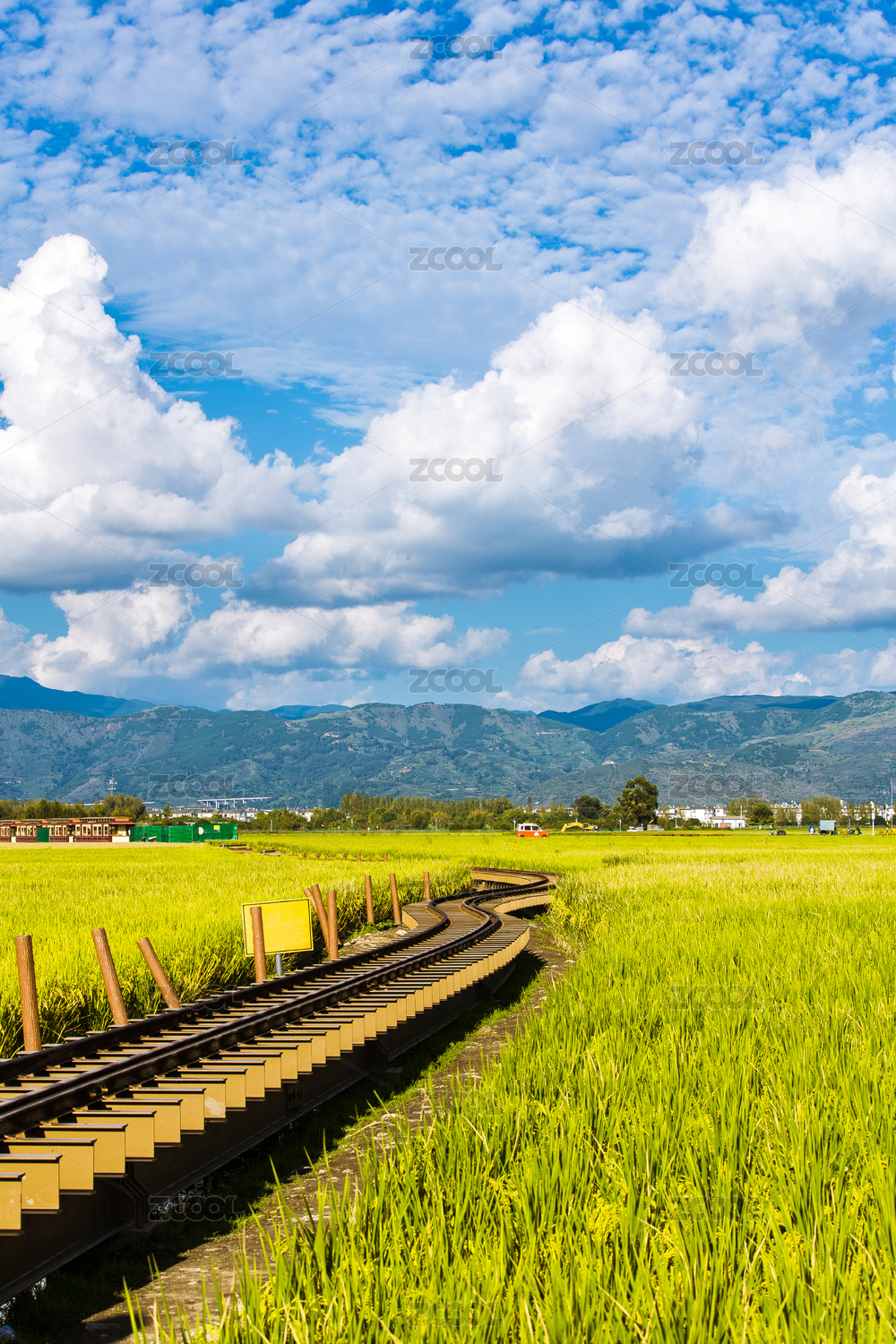 中国云南省大理市喜洲古镇乡间水稻田园风光