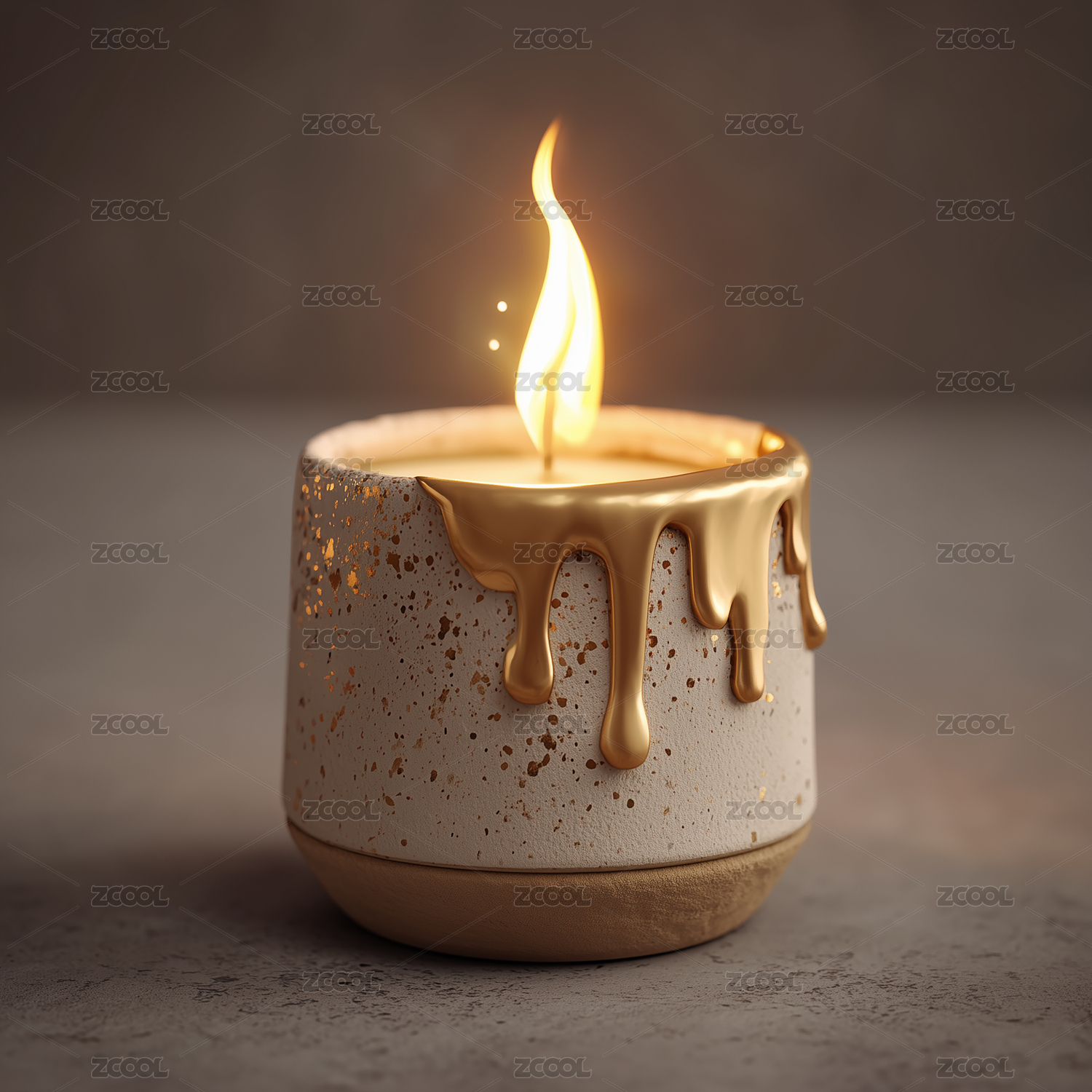 蜡烛,立体,造型,融蜡,滴落,火焰,金色,光线,环境,温馨