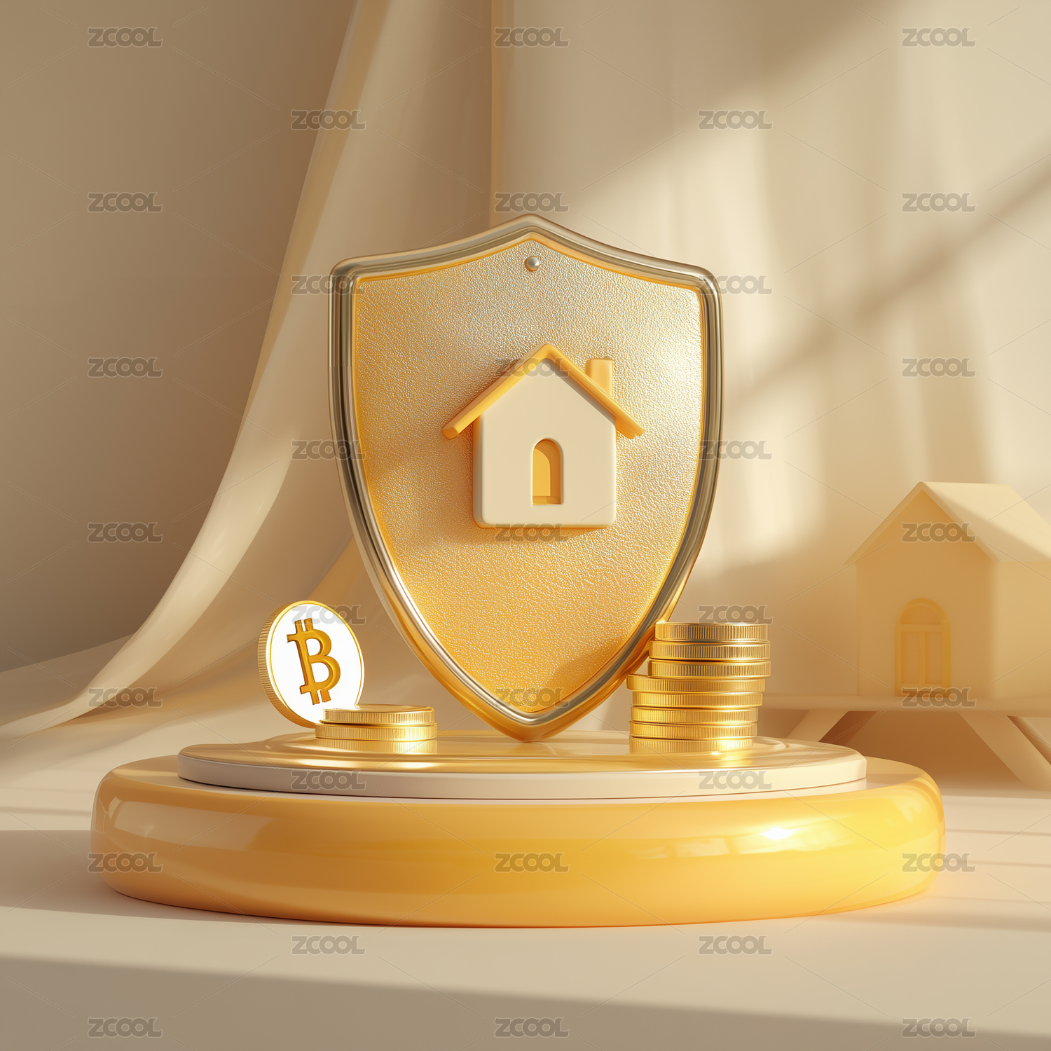 盾牌,金色,房屋,小屋,硬币,图标,底座,圆形,光线,温暖