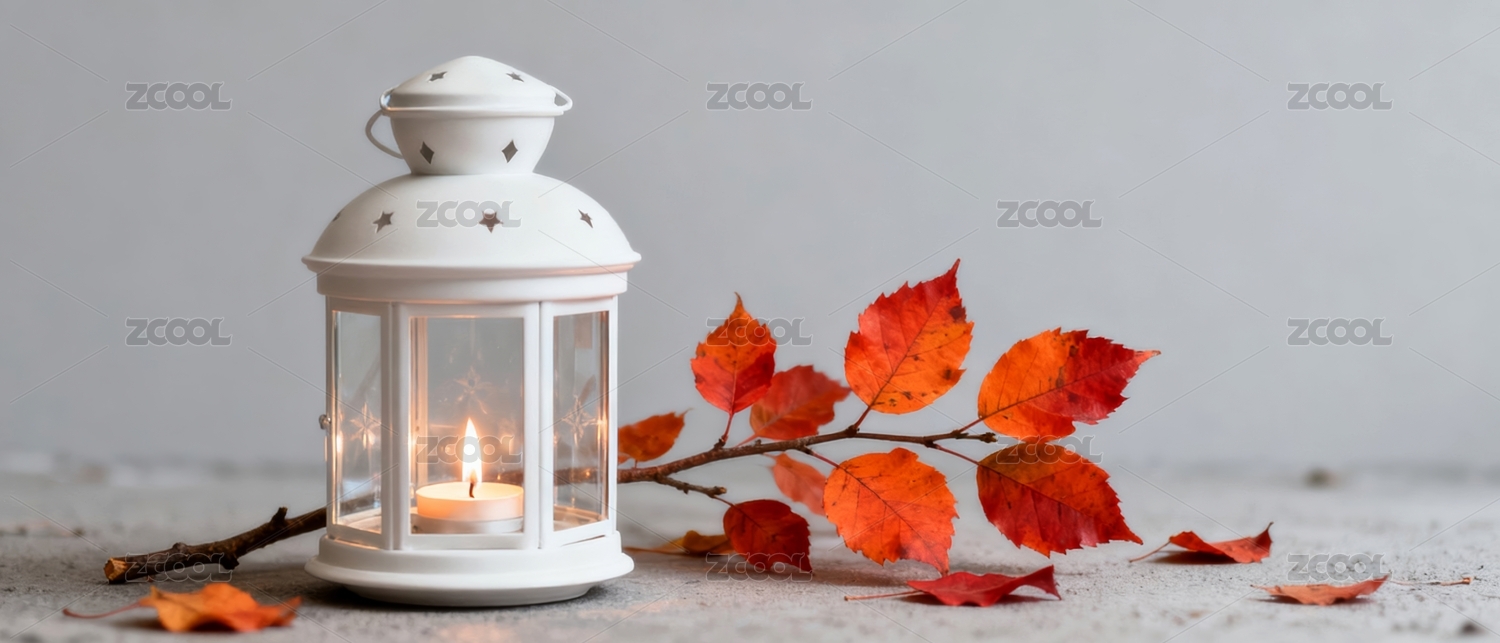 白色风灯秋日温馨场景