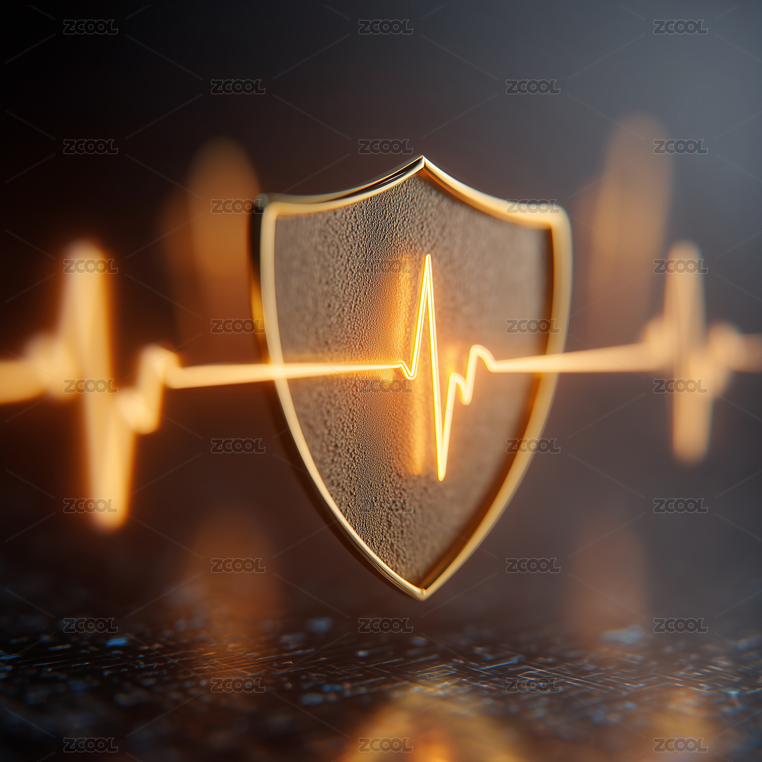 医疗,报告,文档,心搏,心跳,线条,波形,盾牌,金色,主题