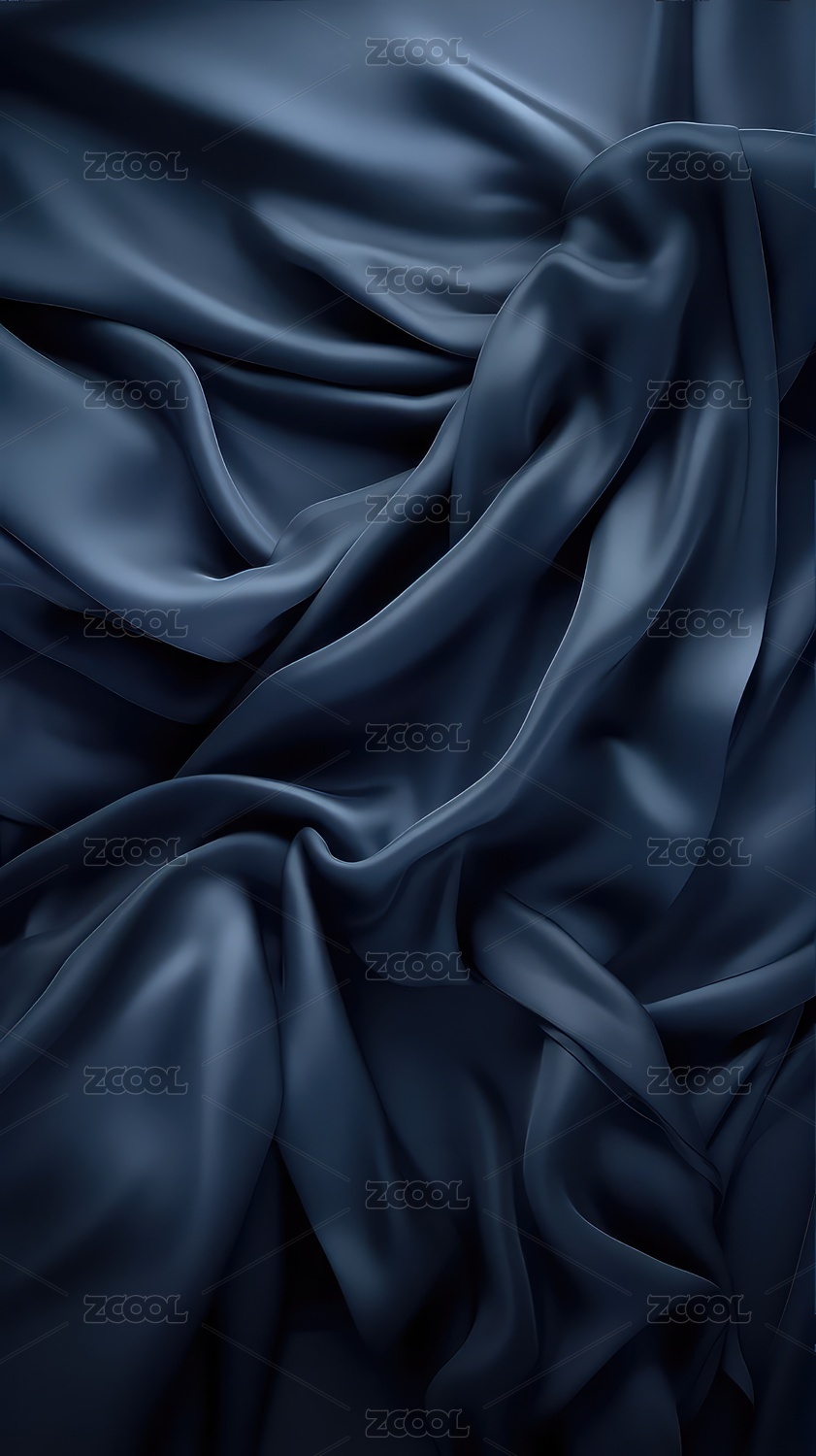 深蓝色丝绸的质感纹理褶皱丰富细腻