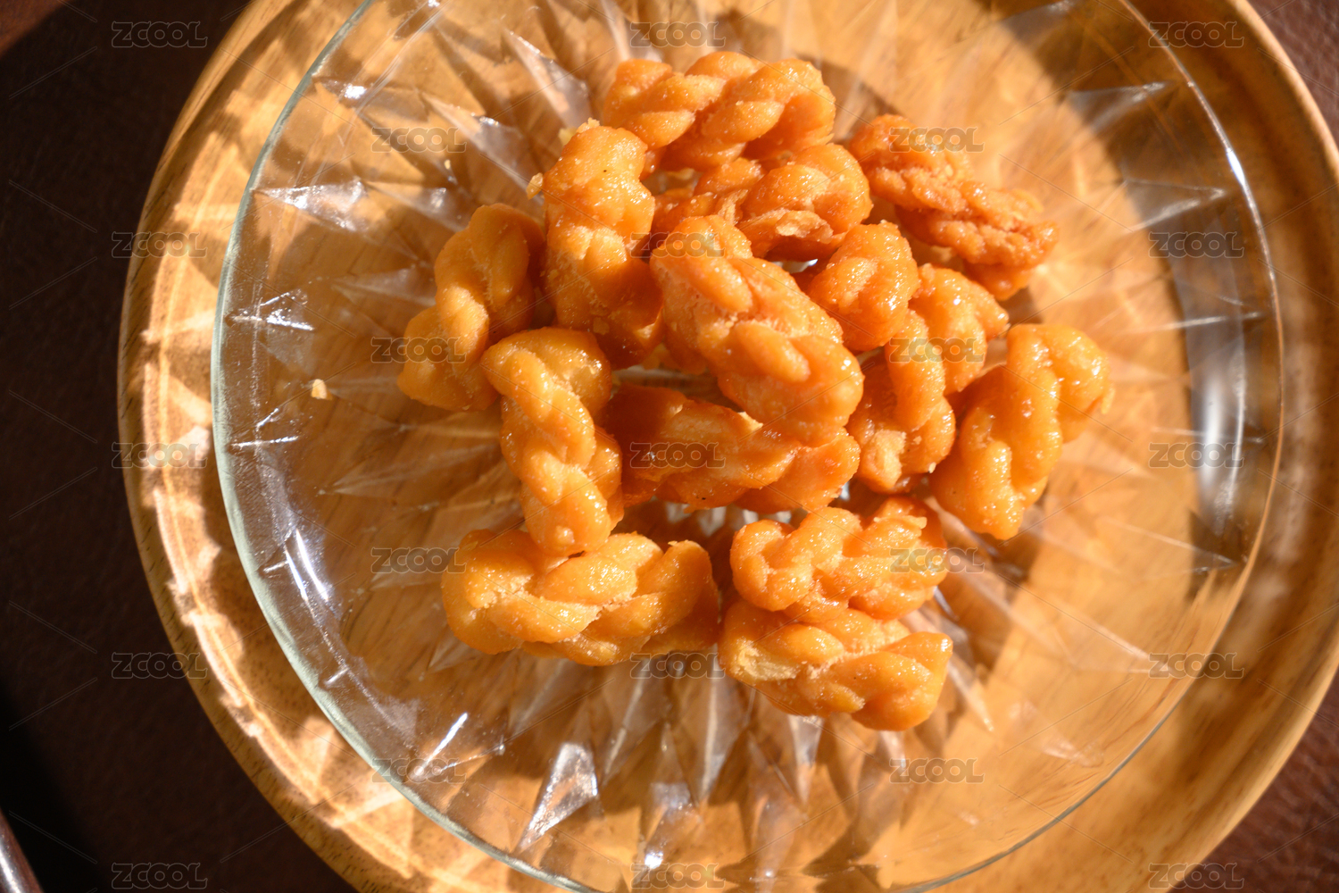 桌面上的盘子里的美味可口的糖麻花