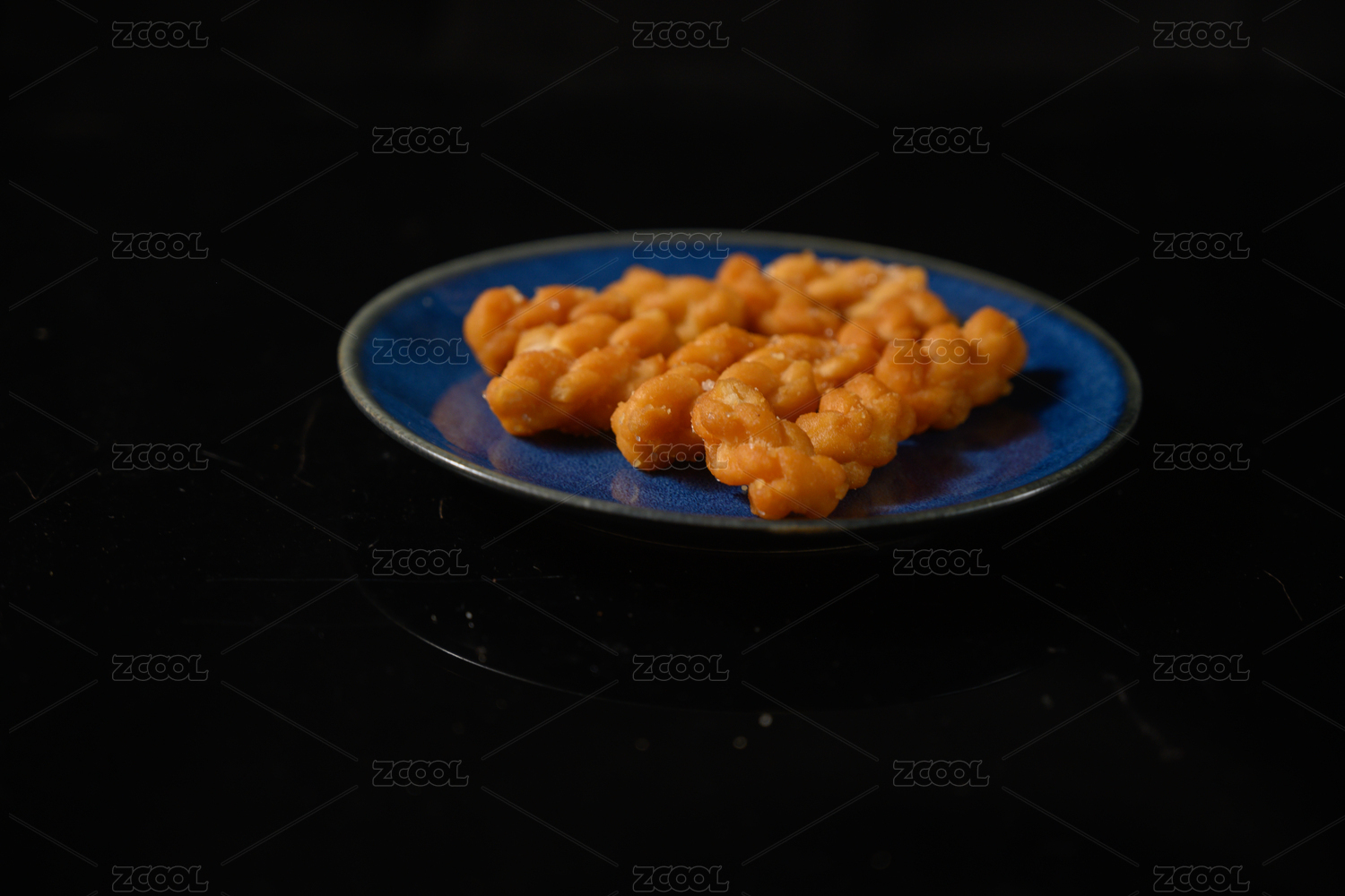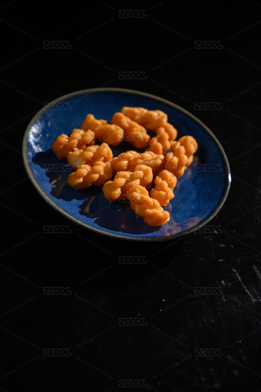 桌面上的盘子里的美味可口的竹盐黄皮干