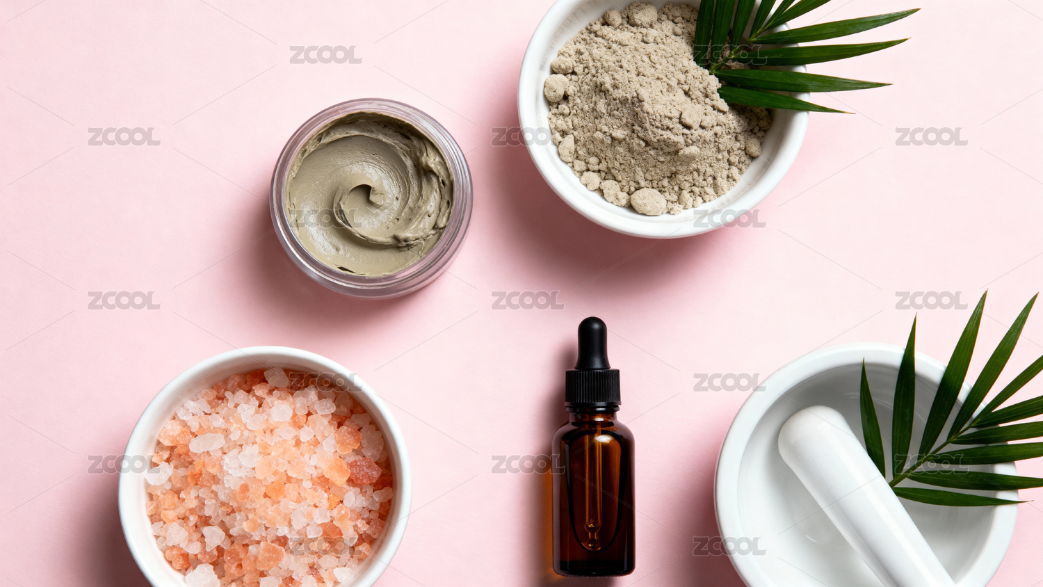粉色背景下的护肤原料与产品