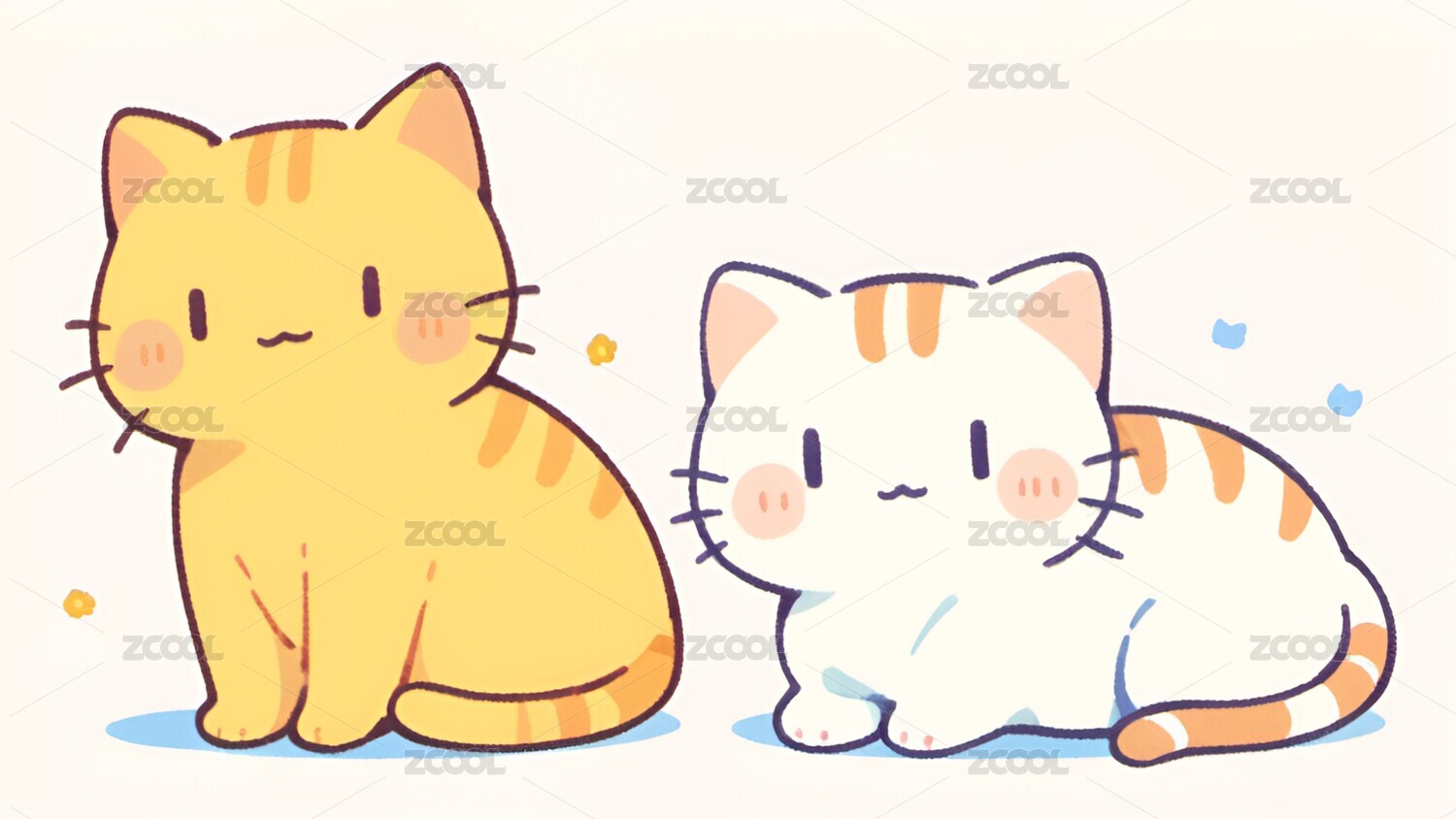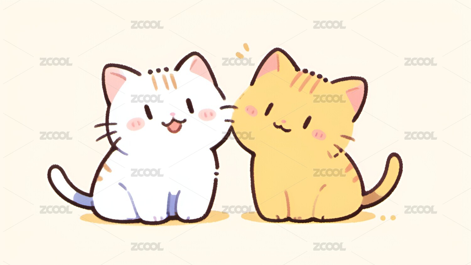 卡通,小猫,猫,可爱,治愈,简笔画,插画,壁纸,宠物,动物
