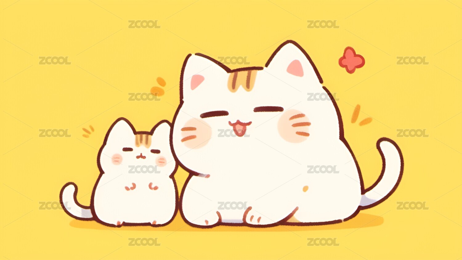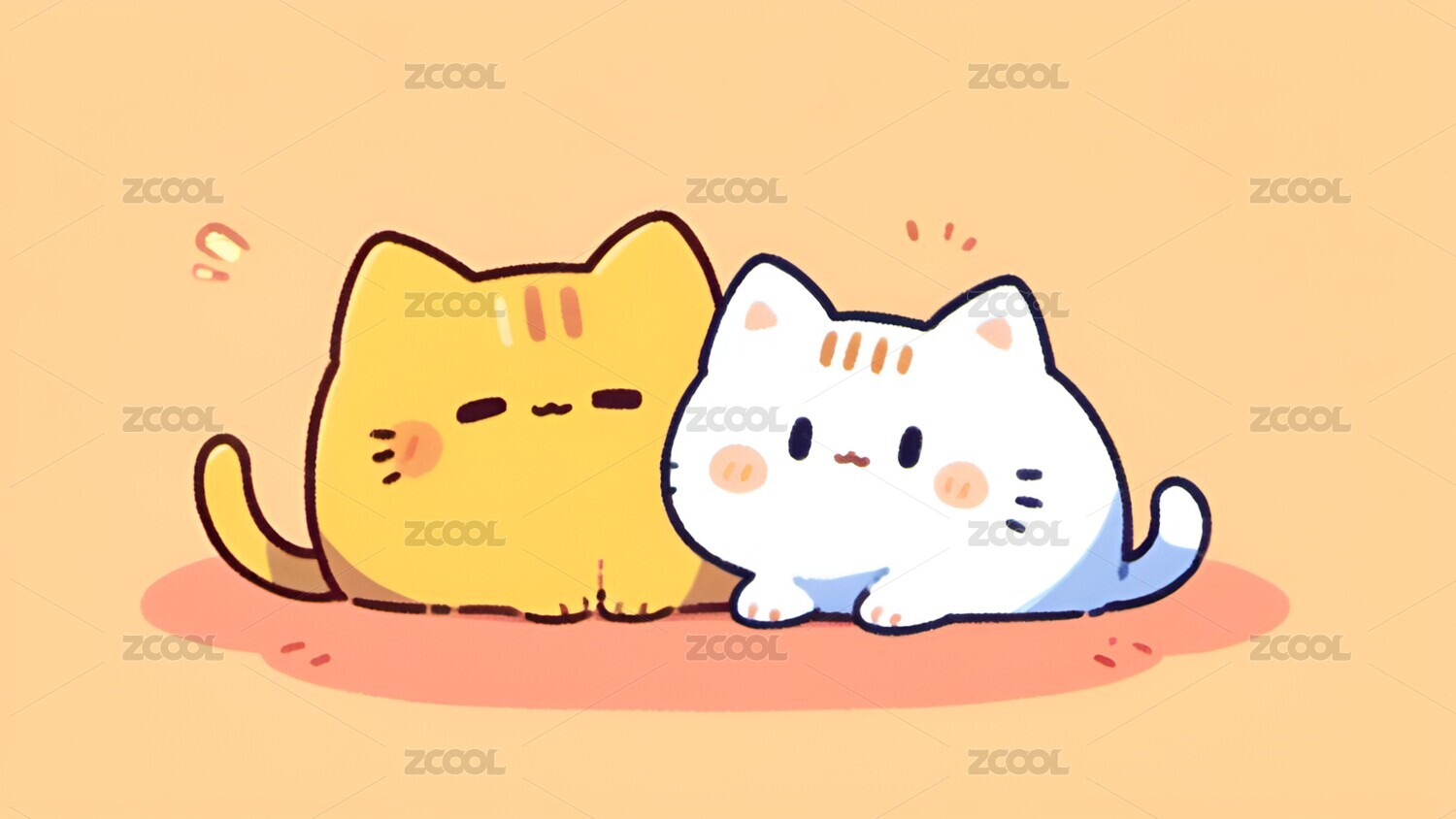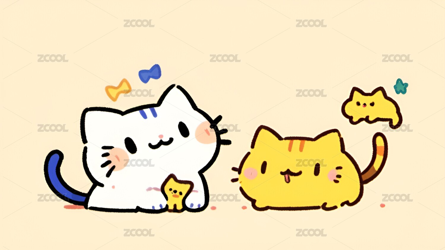 卡通,小猫,猫,可爱,治愈,简笔画,插画,壁纸,宠物,动物