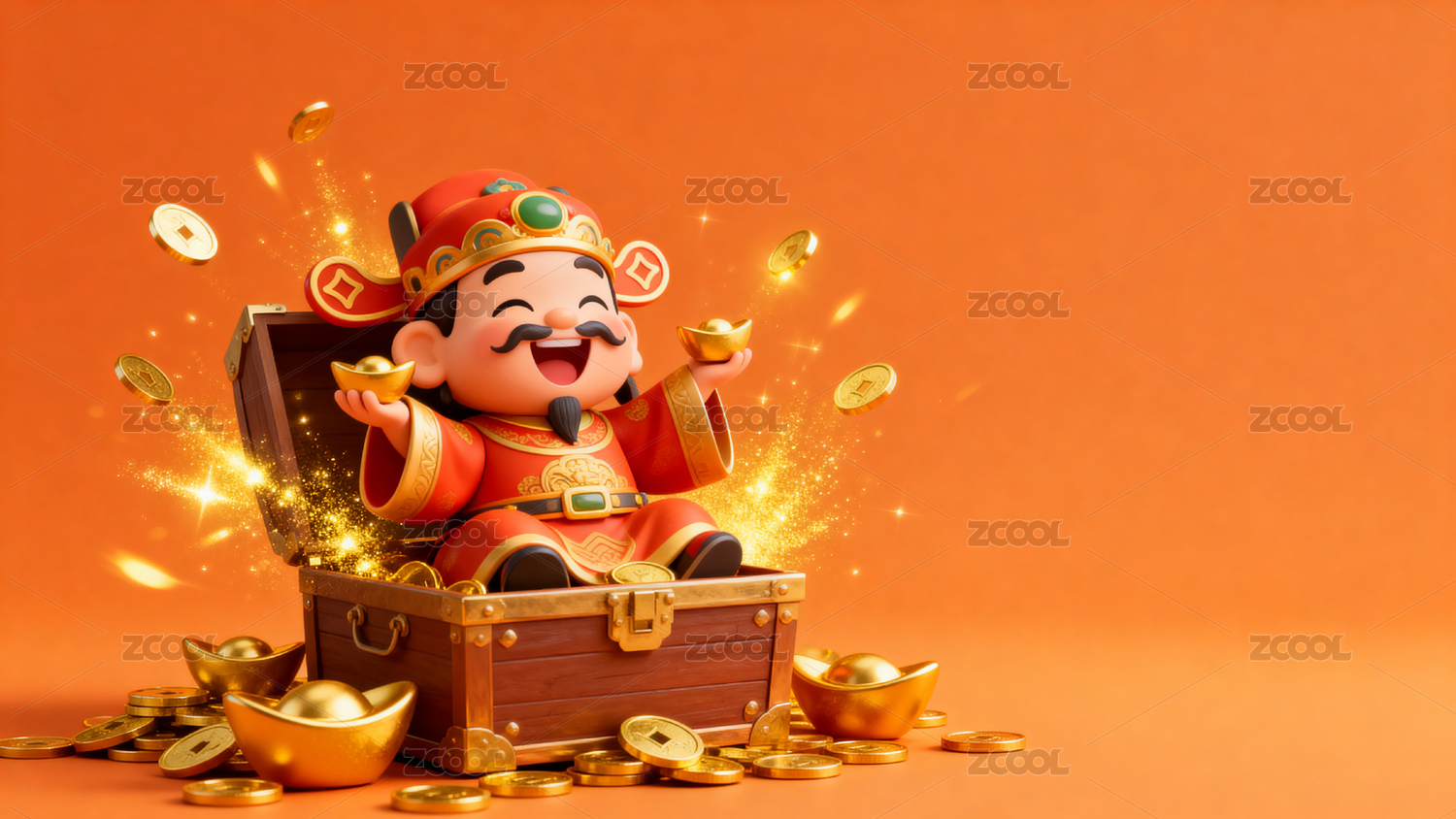 财神,金币,红色,笑容,金色,财富,喜庆,传统,装饰,节日