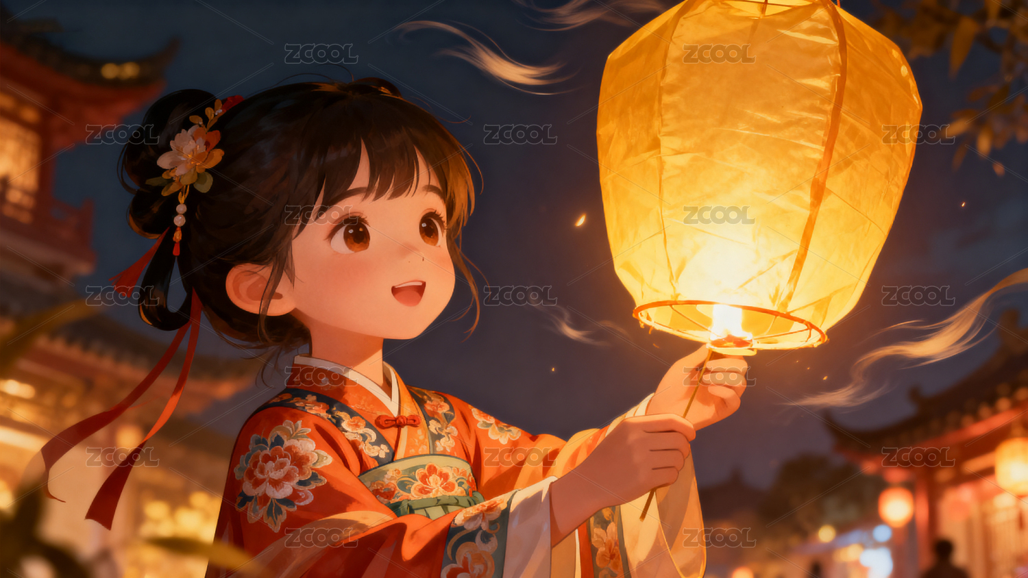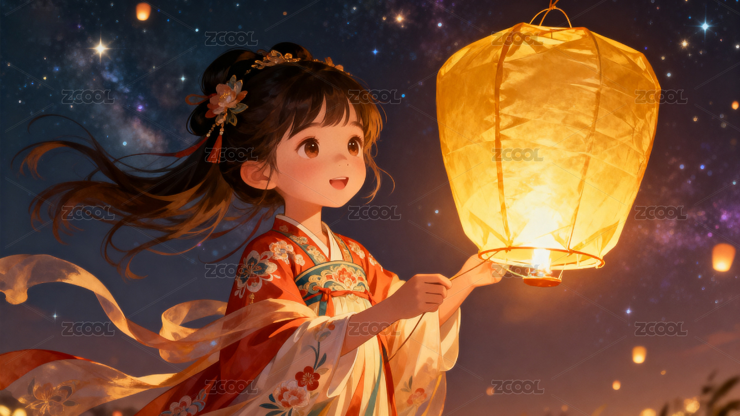 装饰,天空,灯笼,文化,夜晚,眼睛,细节,古装,光芒,女子
