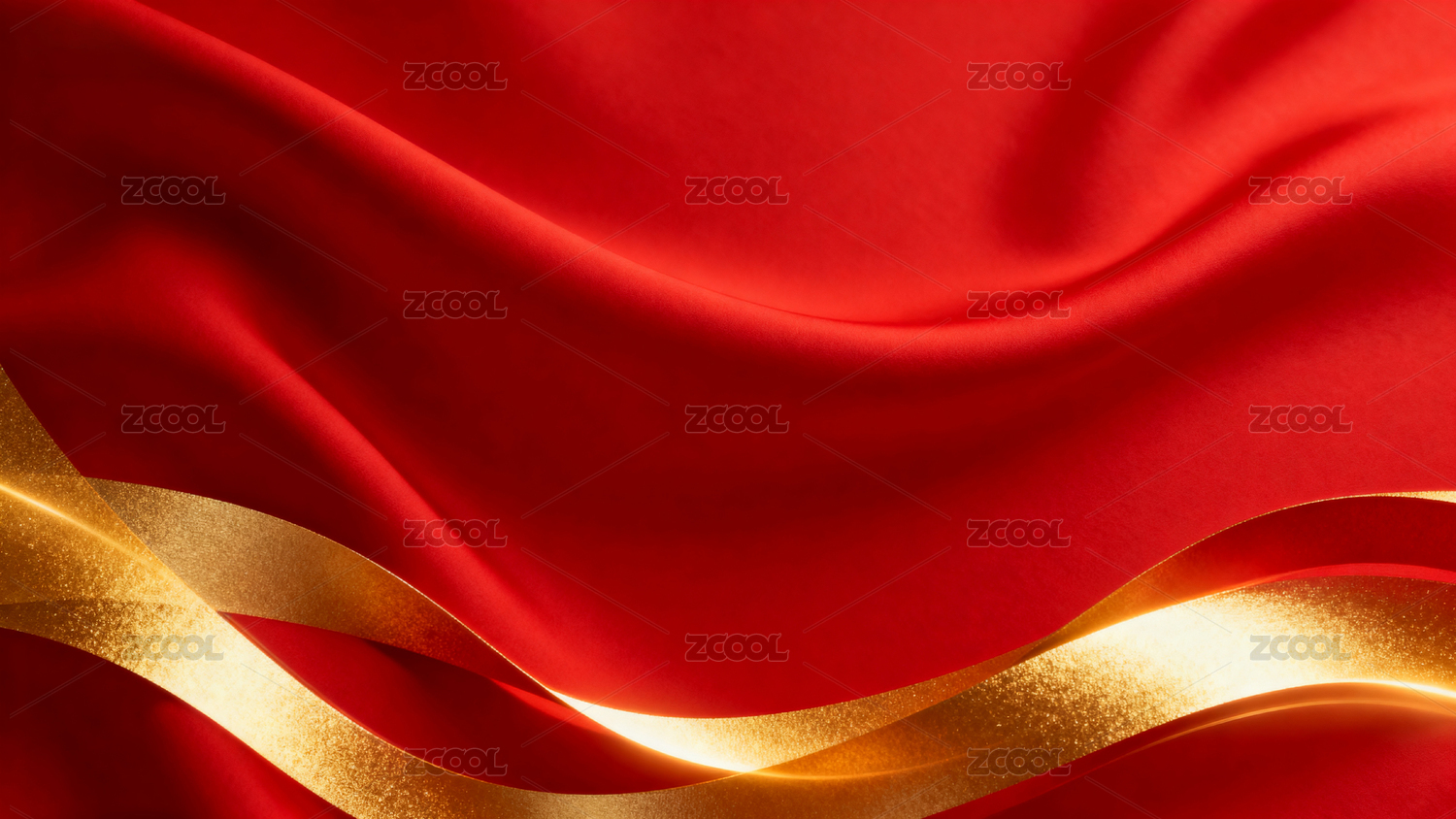 红色背景金色丝带飘逸图案