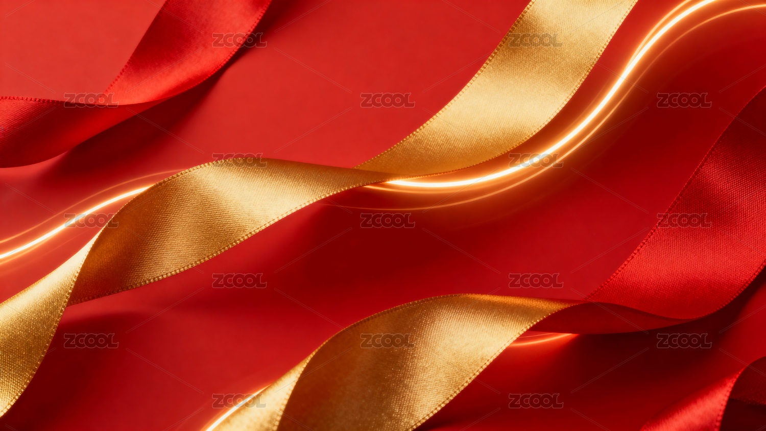 红金丝带交织光影背景