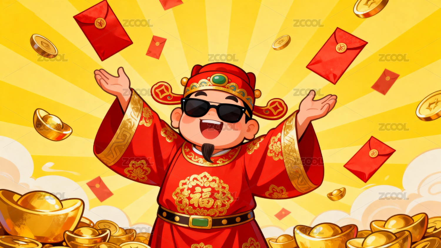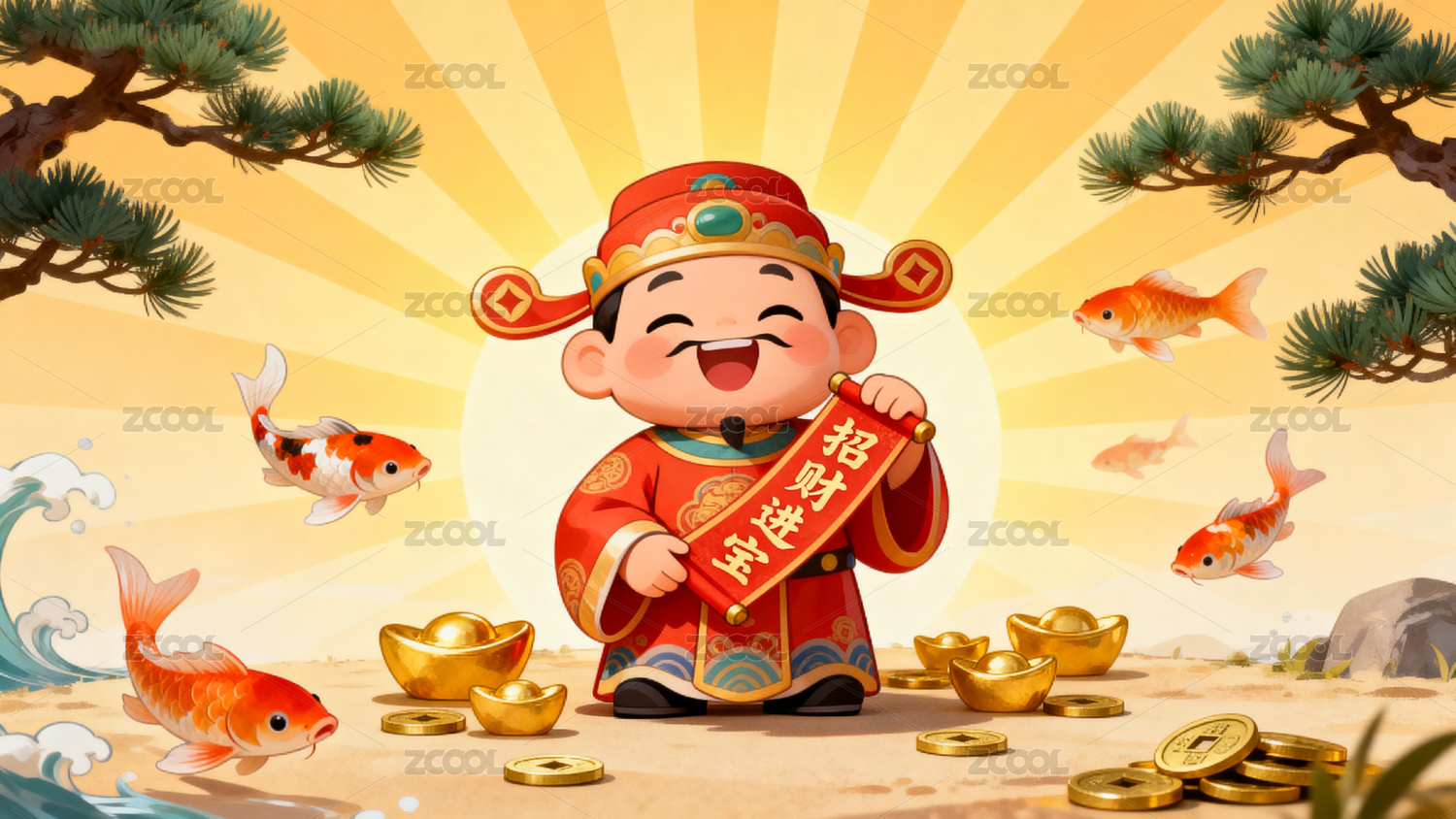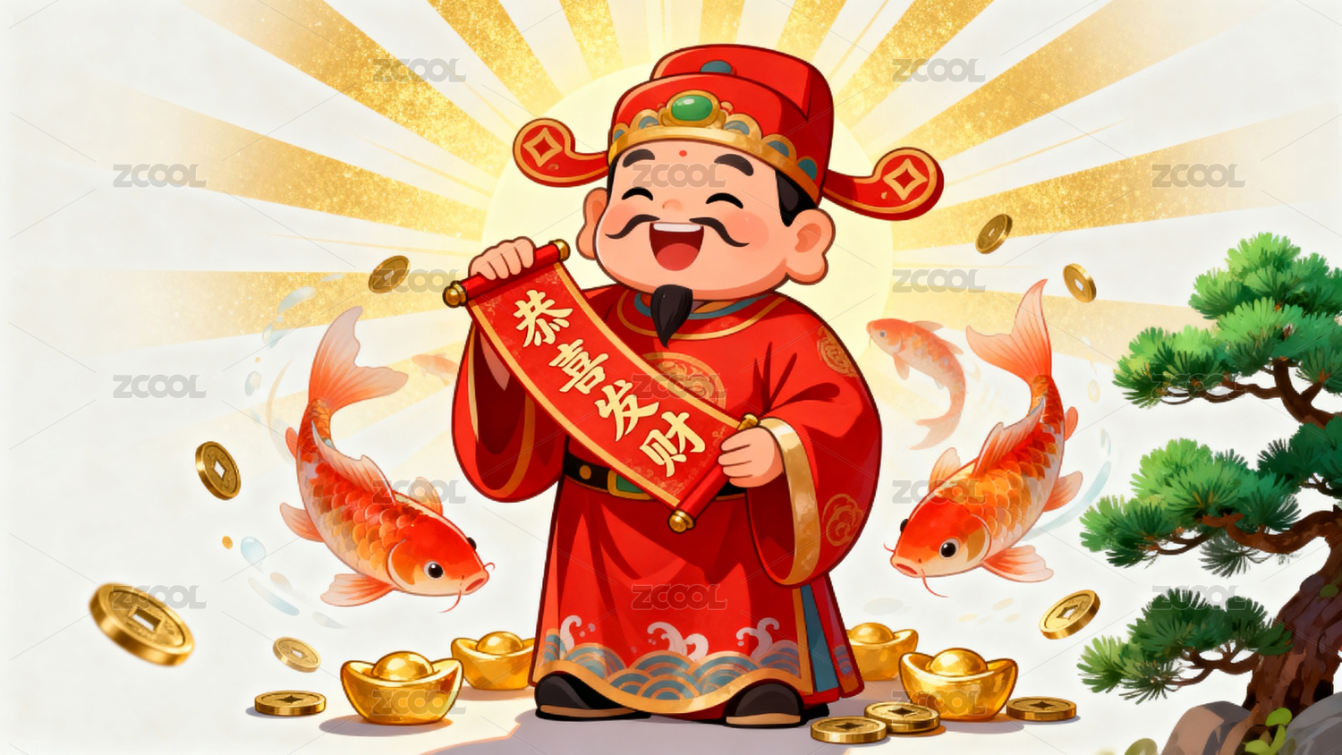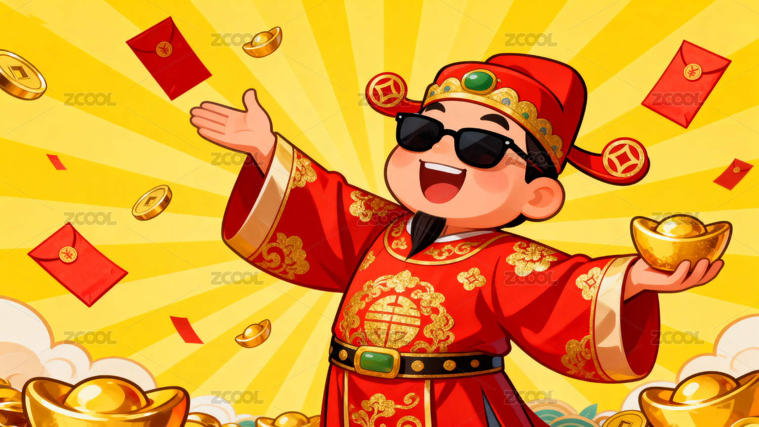 装饰,背景,云朵,红色,金色,天空,喜庆,图案,财神,金币