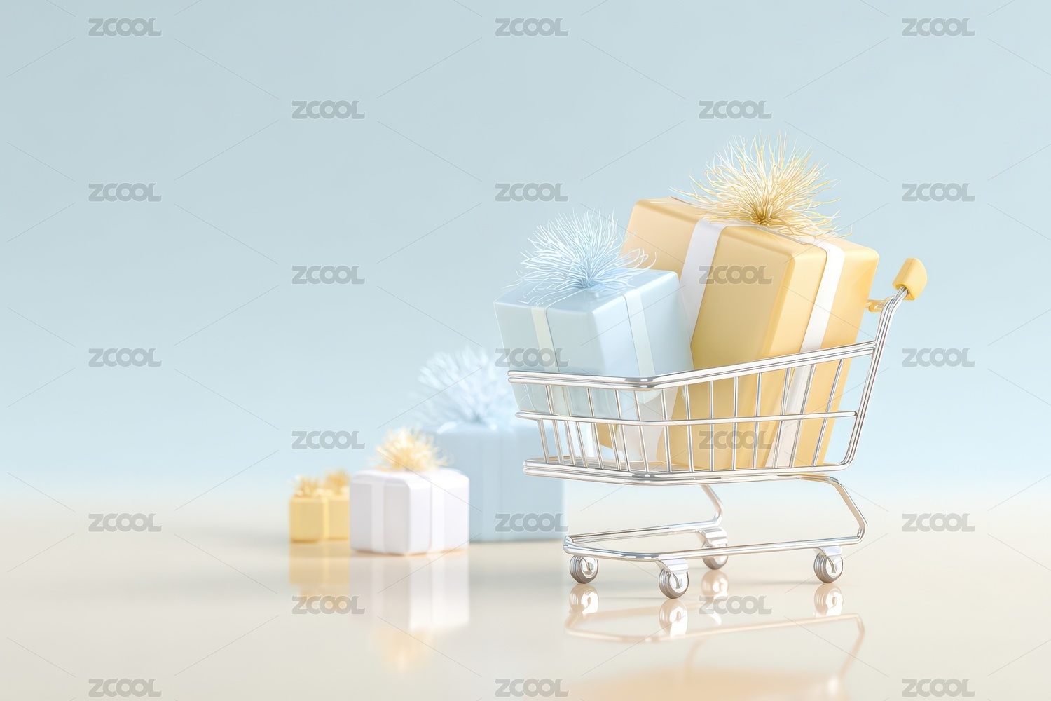 蓝色,设计,白色,简洁,金色,抽象,现代,购物车,礼物盒,钱包
