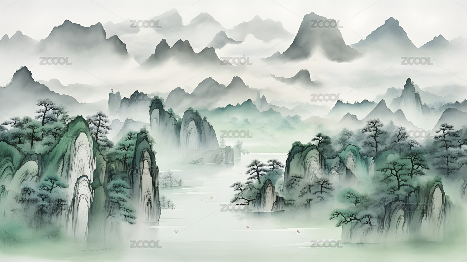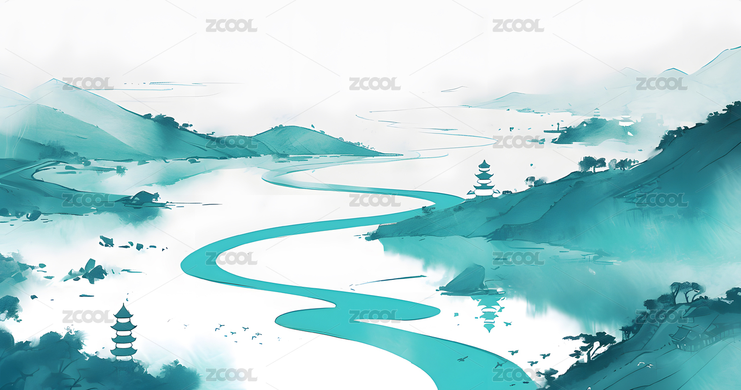 水墨青绿的中国风山水