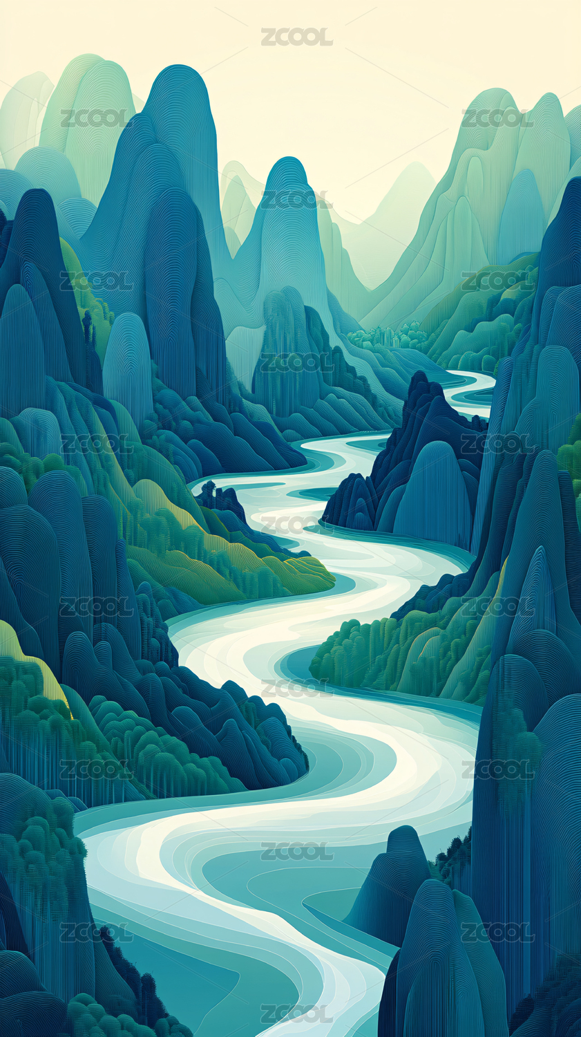 千里江山中国风青山插画