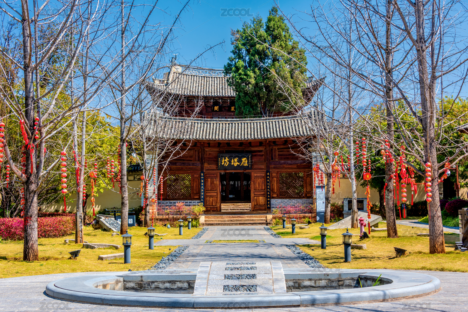 中国云南省丽江市黑龙潭公园园林建筑景观