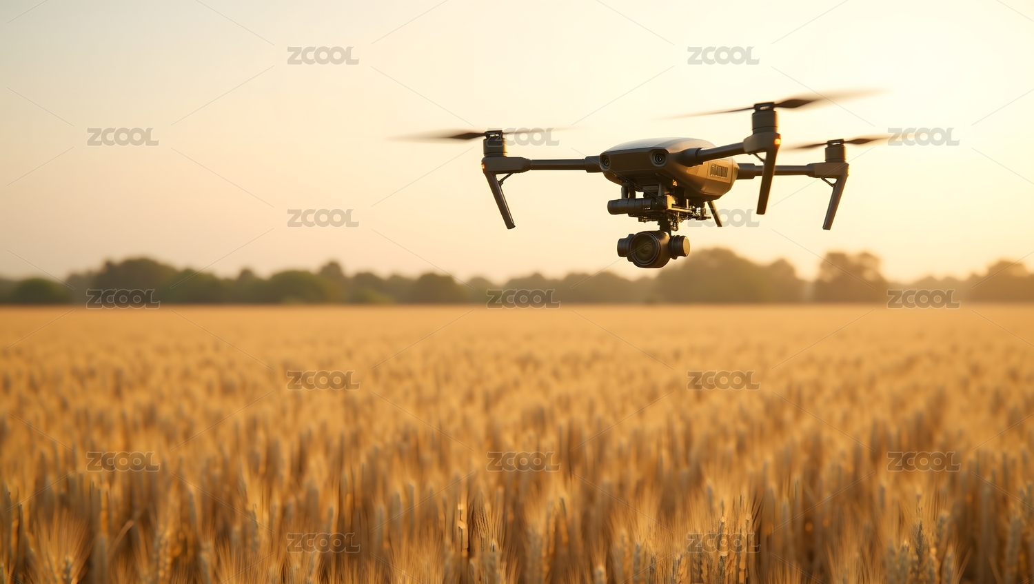 无人机在麦田上空捕捉夕阳余晖下的农田数据