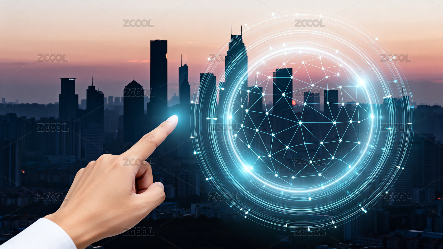 手指触碰科技网络连接城市
