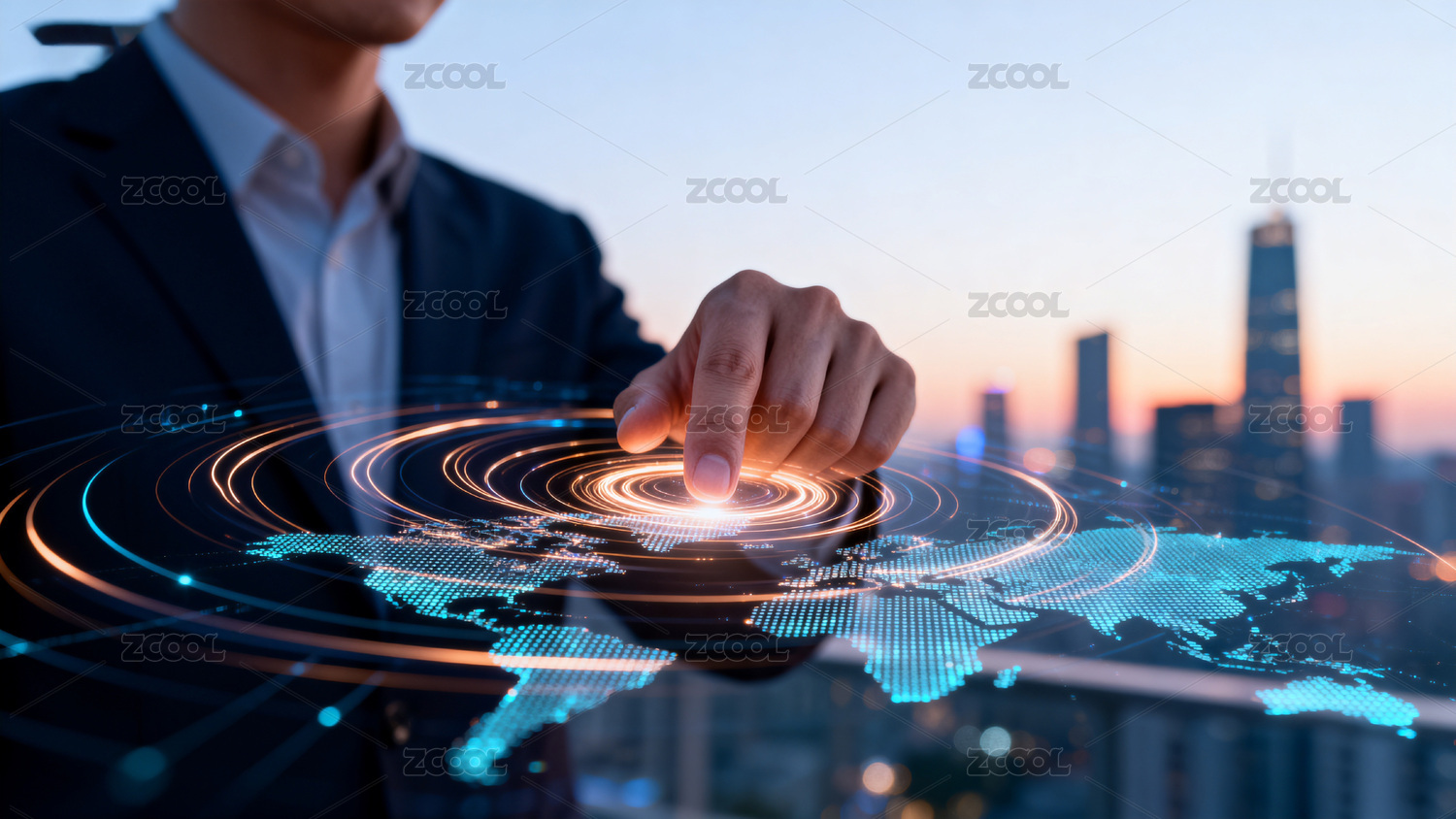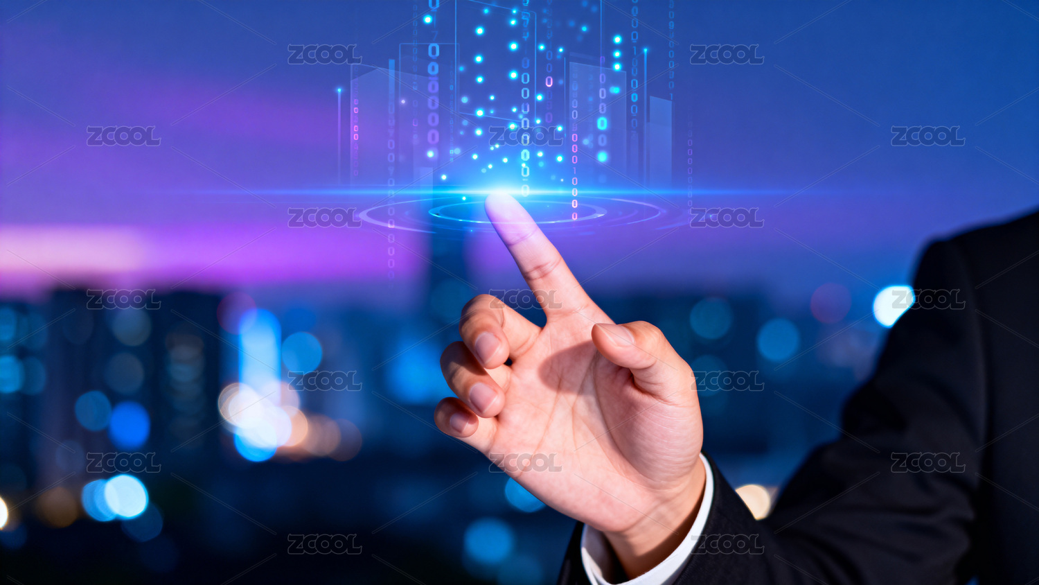 科技城市夜景手指触点